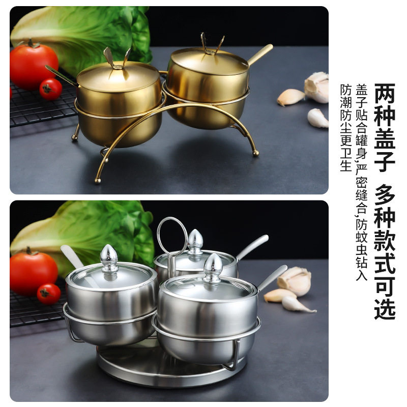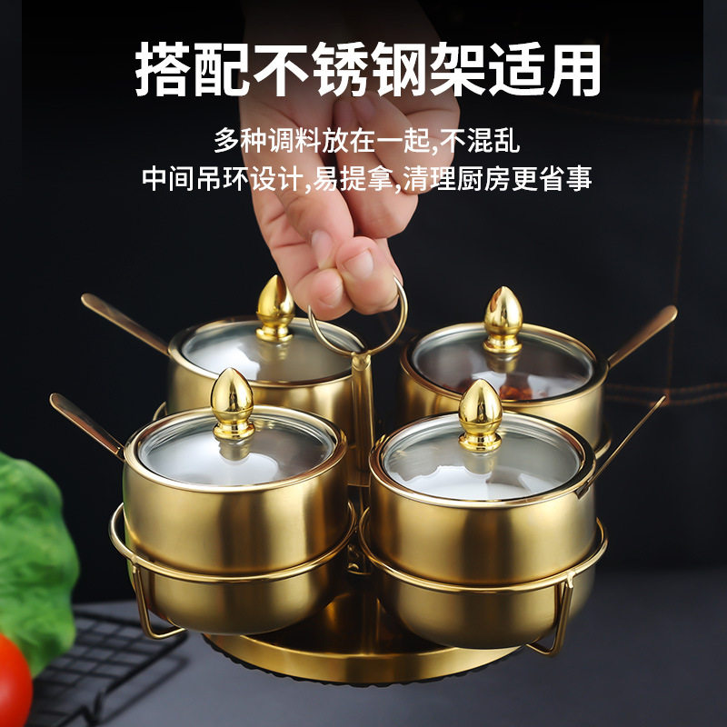 📚 304不锈钢调味罐组合套装韩式商用金色佐料盒调料罐子辣椒油盐罐