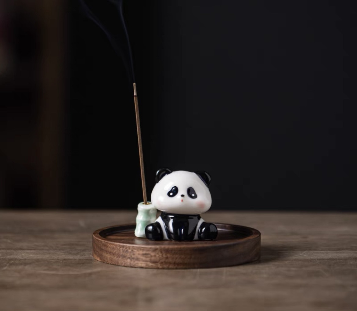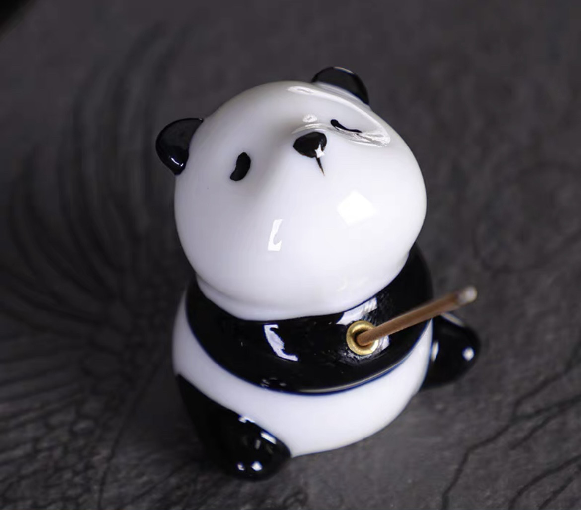 📚 创意小熊猫陶瓷沉香线香香插香简约中式茶宠多色可选摆件