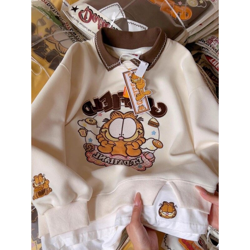 📚 奥特莱斯~清仓撤柜卡通刺绣polo领卫衣女秋冬季假两件设计感上衣