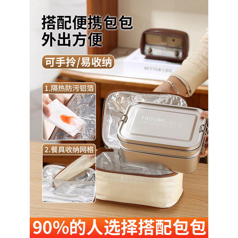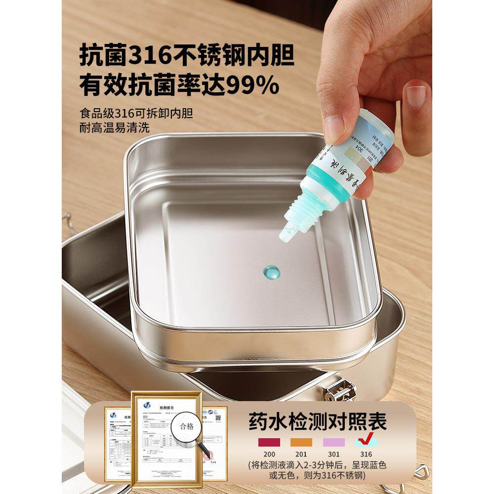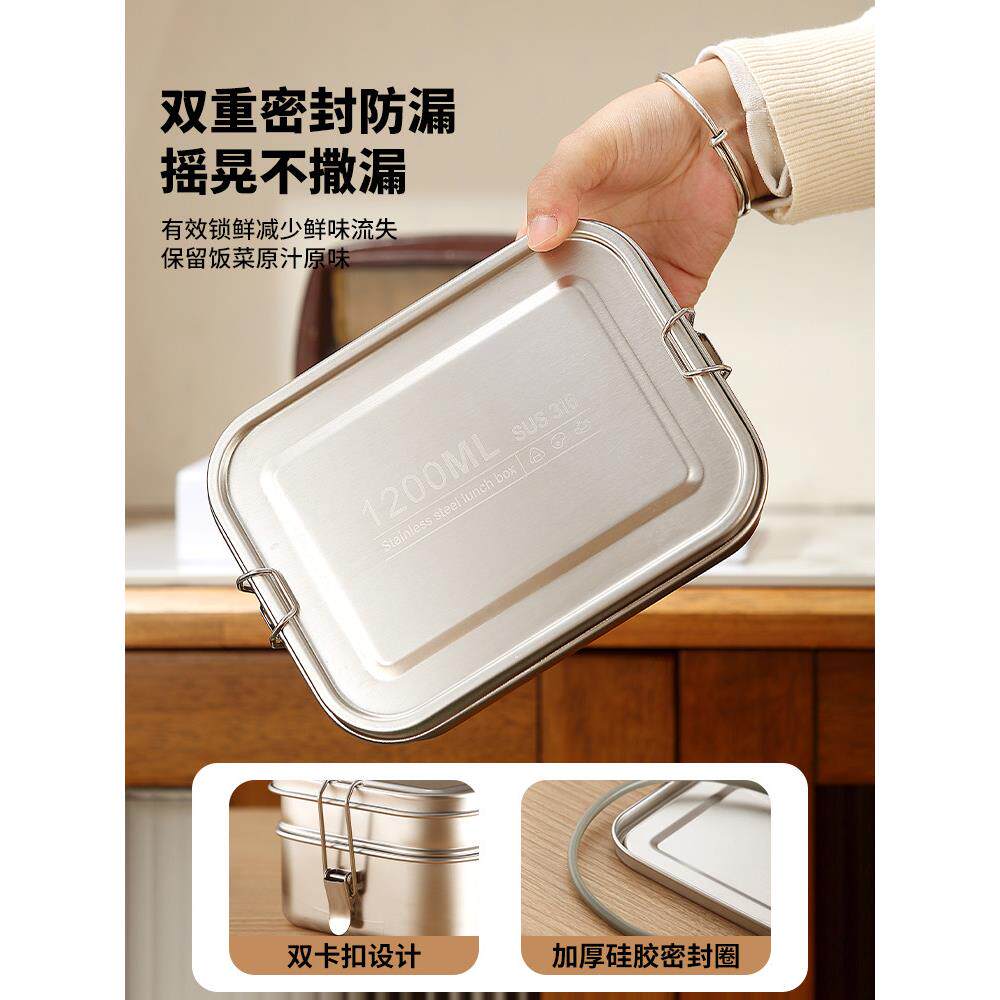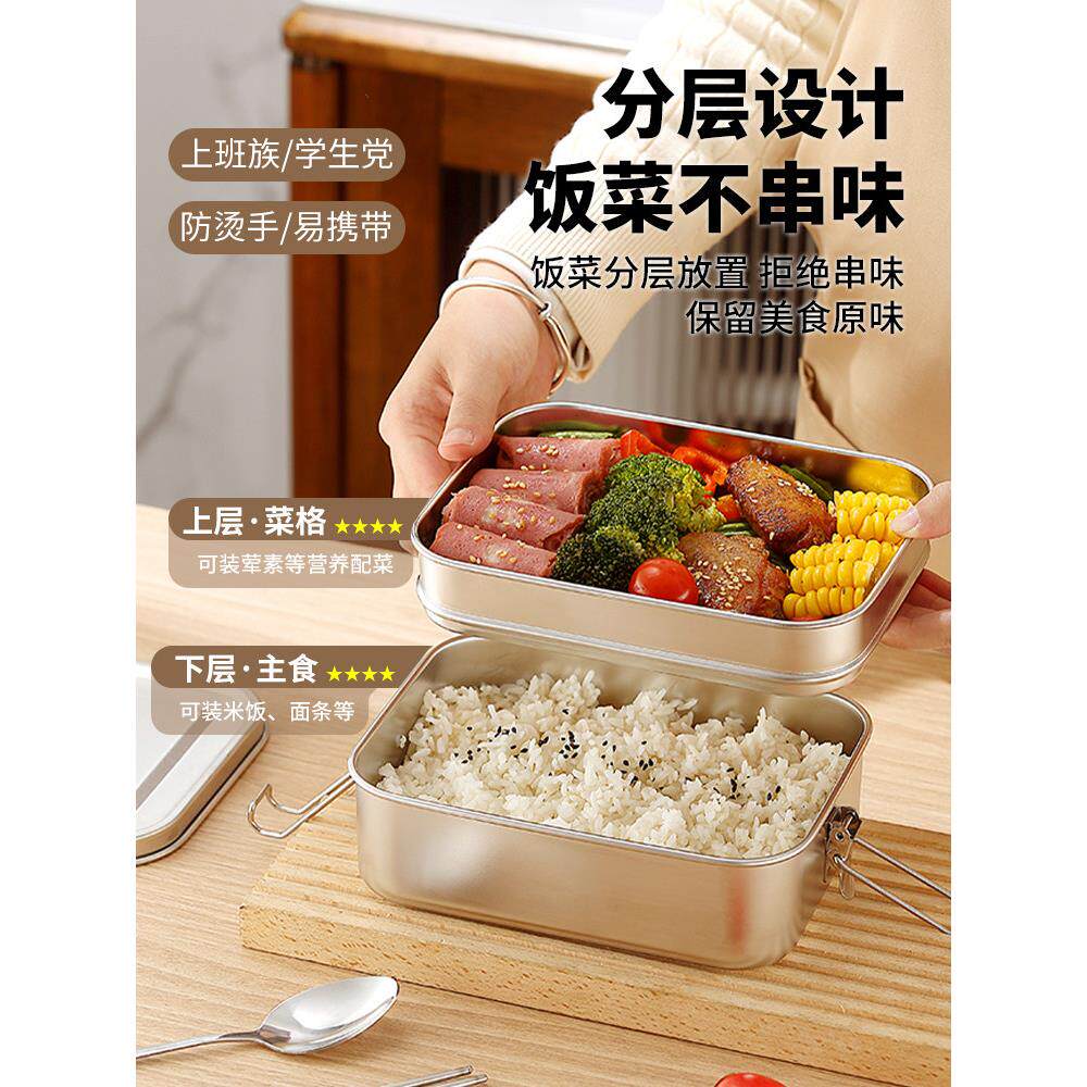 📚 食品级316不锈钢饭盒矩形米饭饭盒售票员食堂双层铁饭盒林
