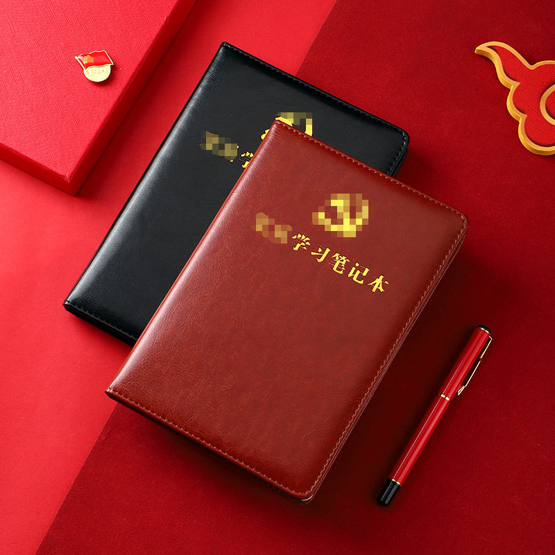 📚 A5烫金红色笔记本礼盒装党员学习本子可全套定制LOGO教育工作党支部会议记录纪念本册