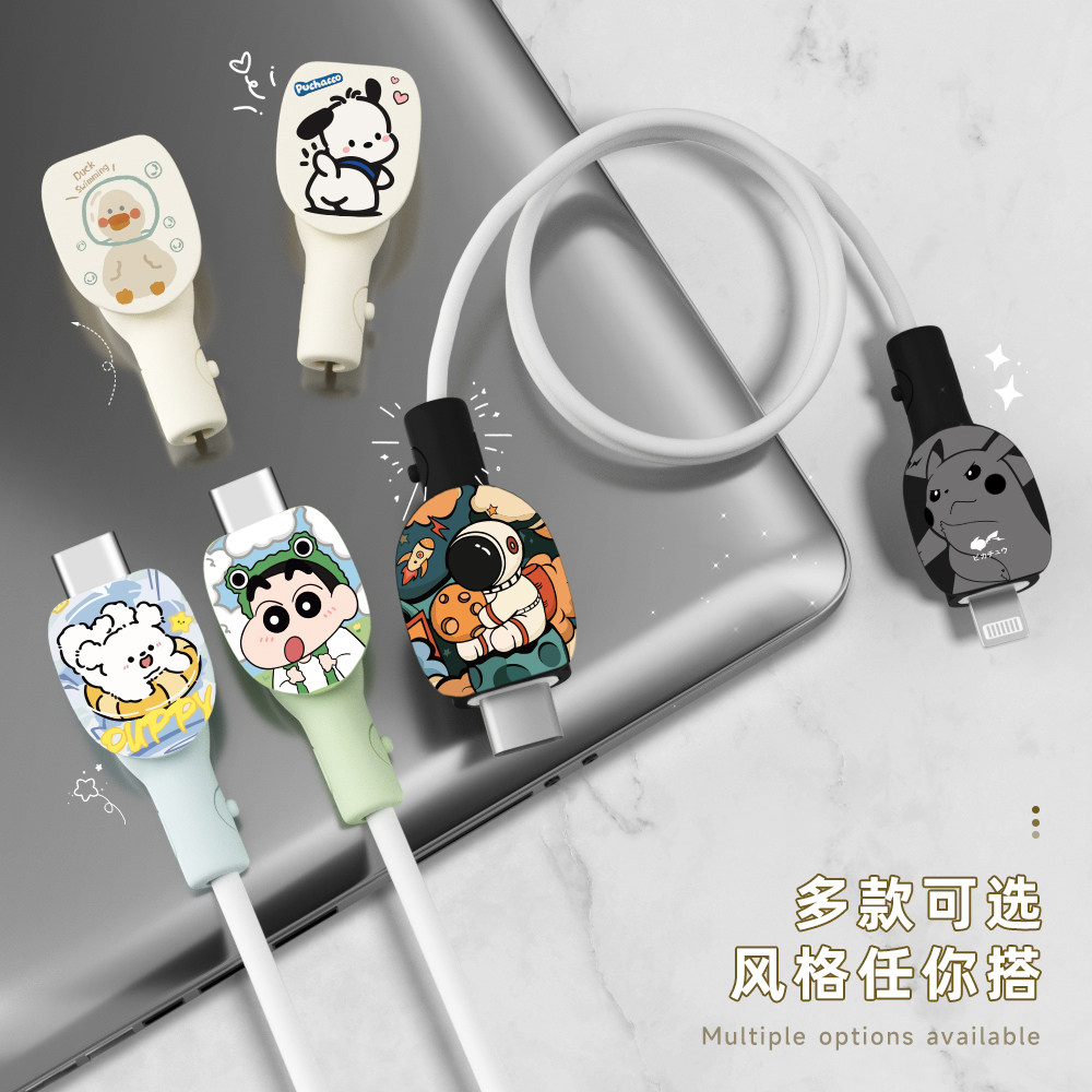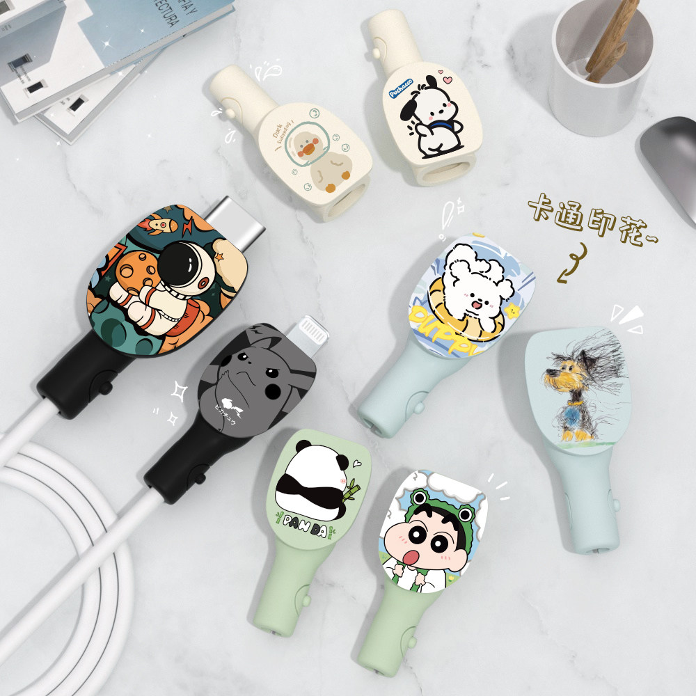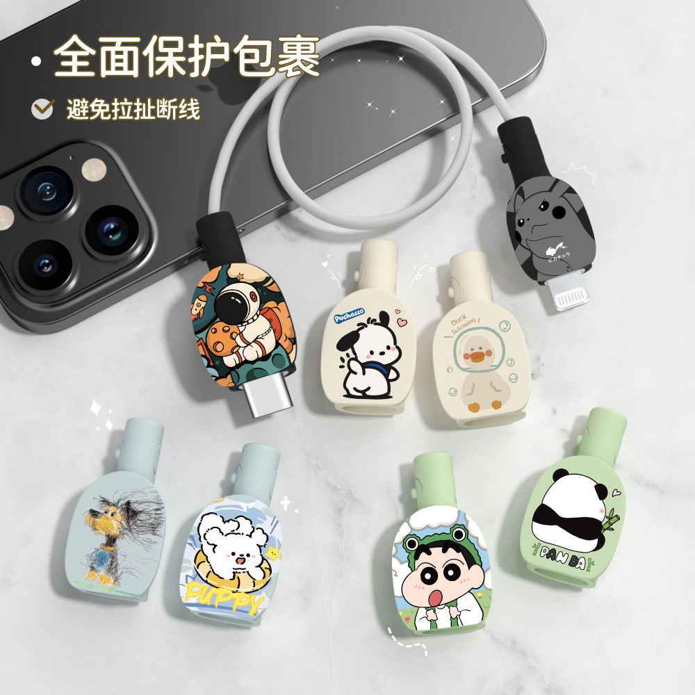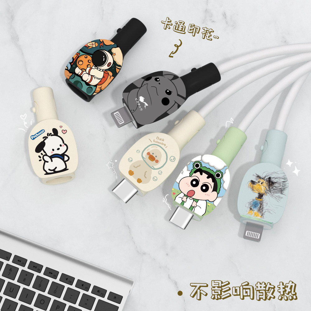 📚 可爱印花款数据线防折断两端保护套缠绕绳苹果17pro小米15ultraOPPOReno13通用vivox200pro硅胶充电器保护套