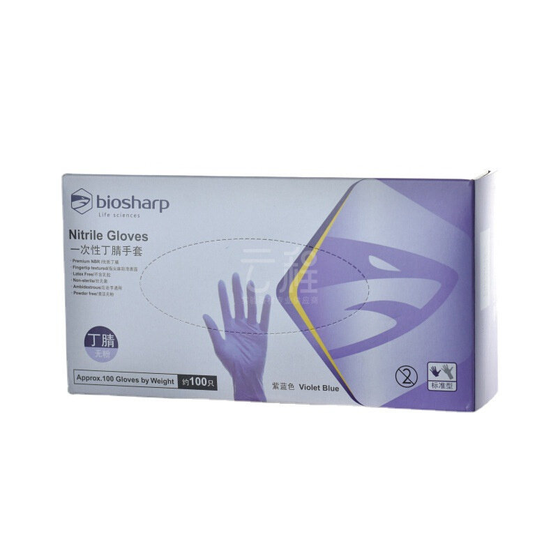 📚 白鲨biosharp手套丁腈手套无粉9寸无尘净化手套100只/盒 紫蓝色指