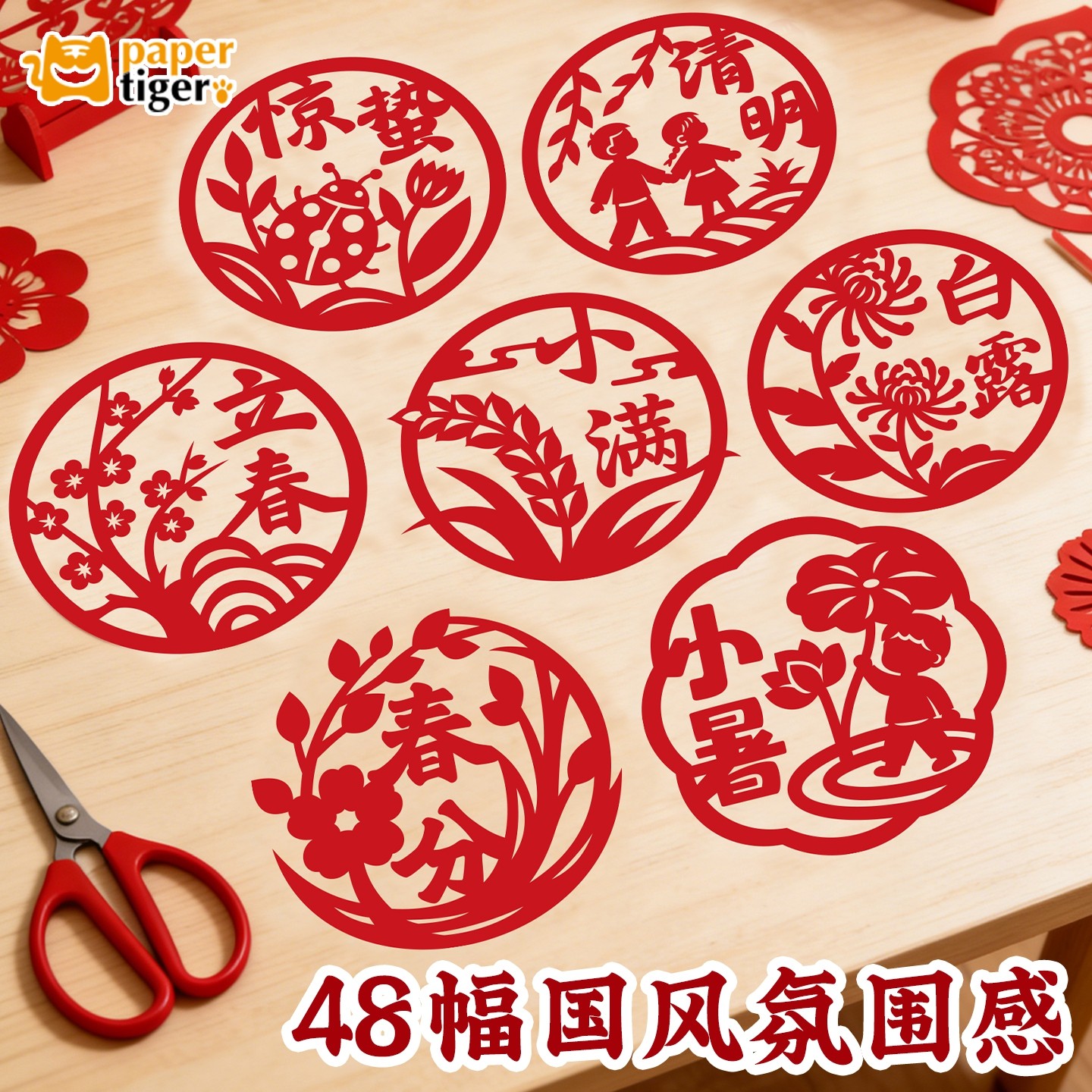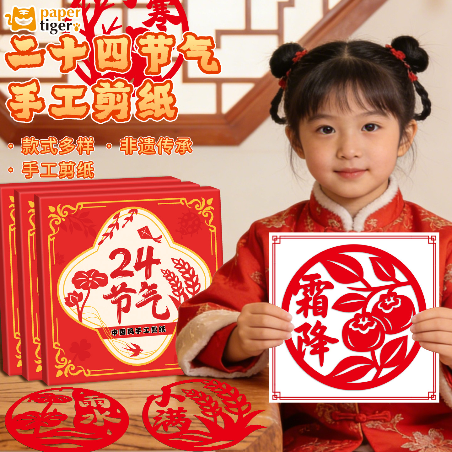 📚 马年新款儿童手工二十四节气剪纸线稿节日中国风特色传统文化窗花
