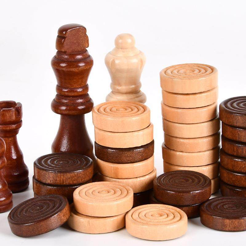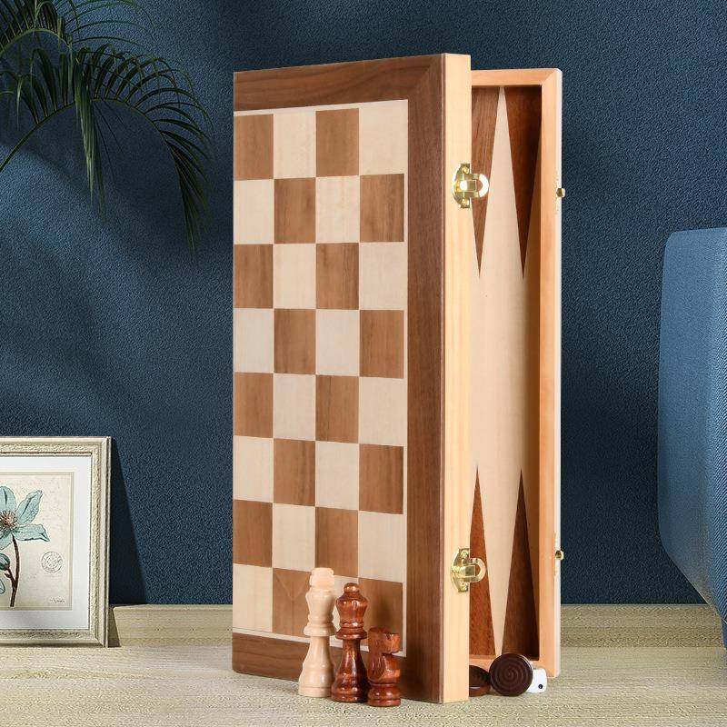 📚 智多星大号木皮拼接实木象棋跳棋双陆棋三合一对开棋盒套装象棋、