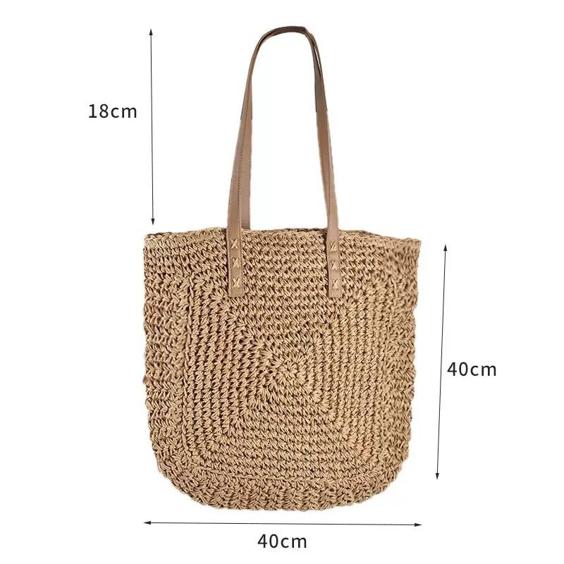 📚 休闲大容量草编包女单肩托特包手工编织沙滩包购物袋女包拉链