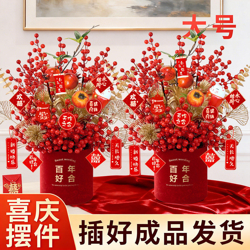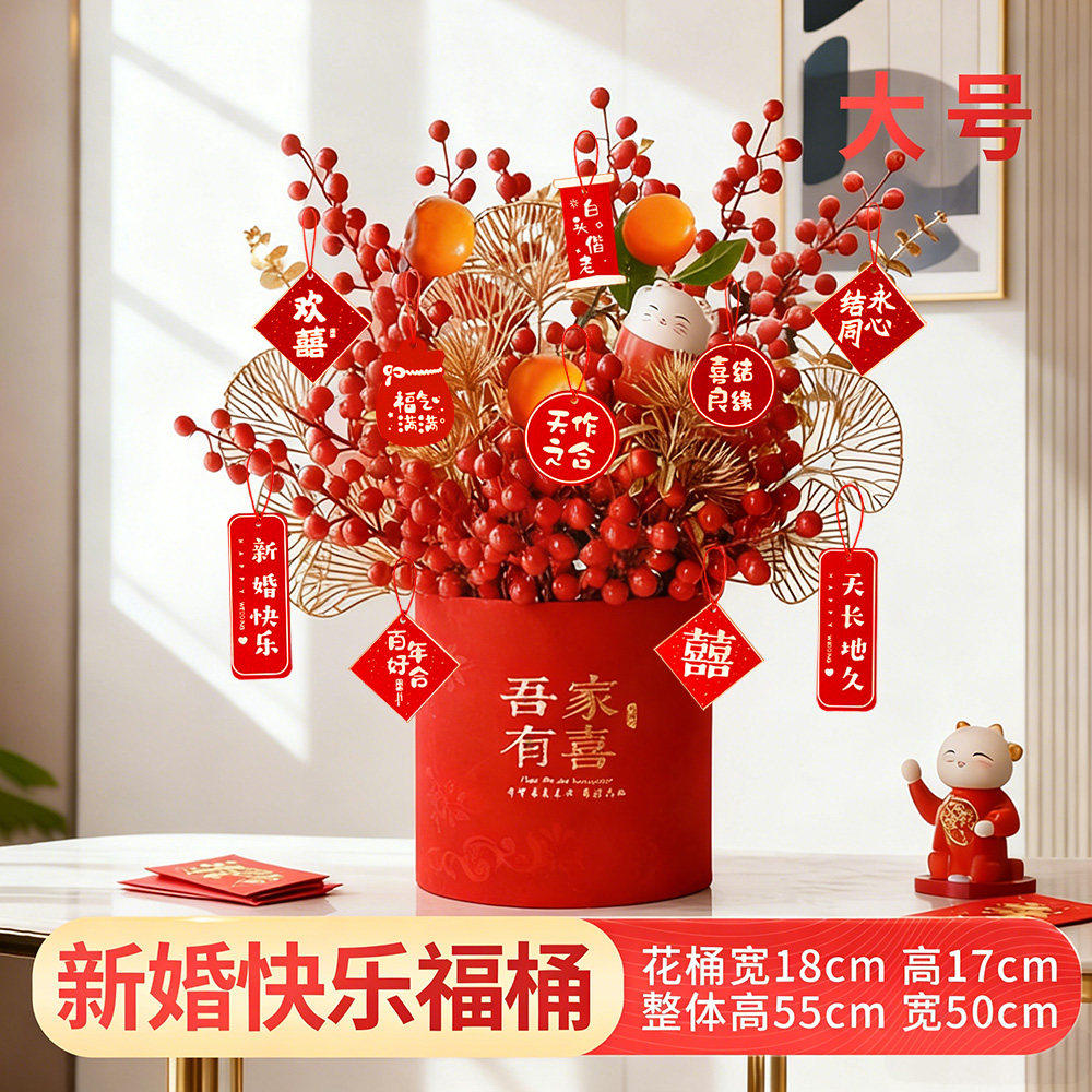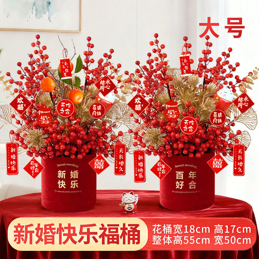 📚 结婚装饰乔迁之喜花束摆件搬家仿真花过年插花春节年宵花福桶假花