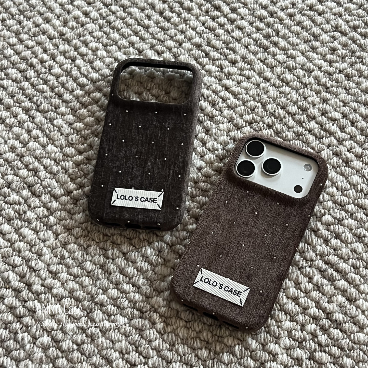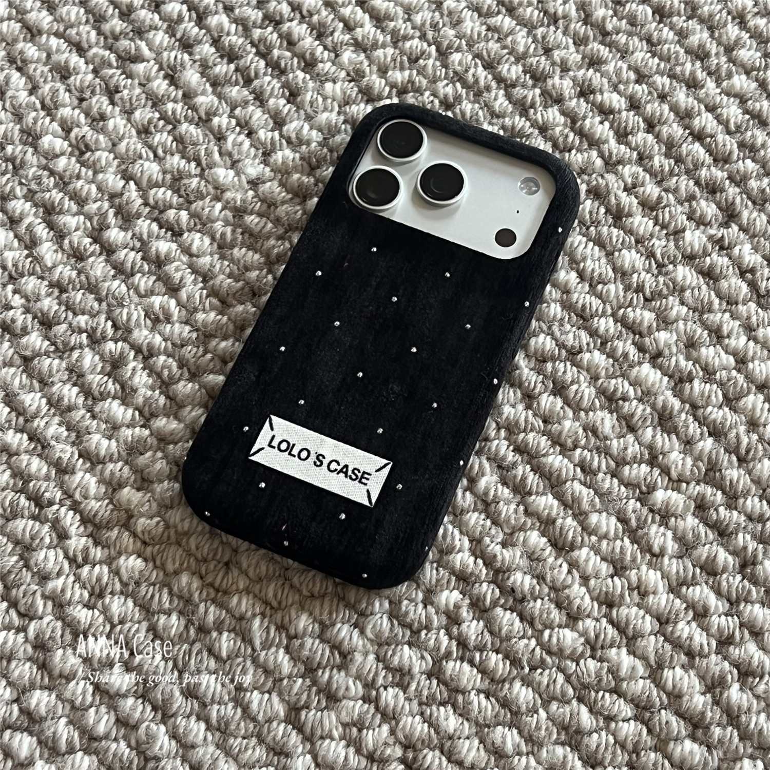 📚 ANNACASE秋冬ins纯色丝绒满天星闪钻绒布手机壳适用iphone17promax苹果14软13新款15pro女16ProMax防摔保护套