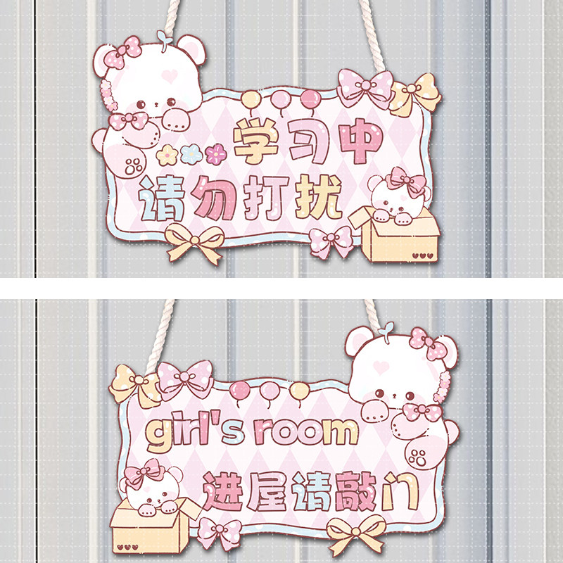 📚 门牌卧室女孩PVC可爱学习中进门请敲门提示牌挂牌ins高颜值二次元