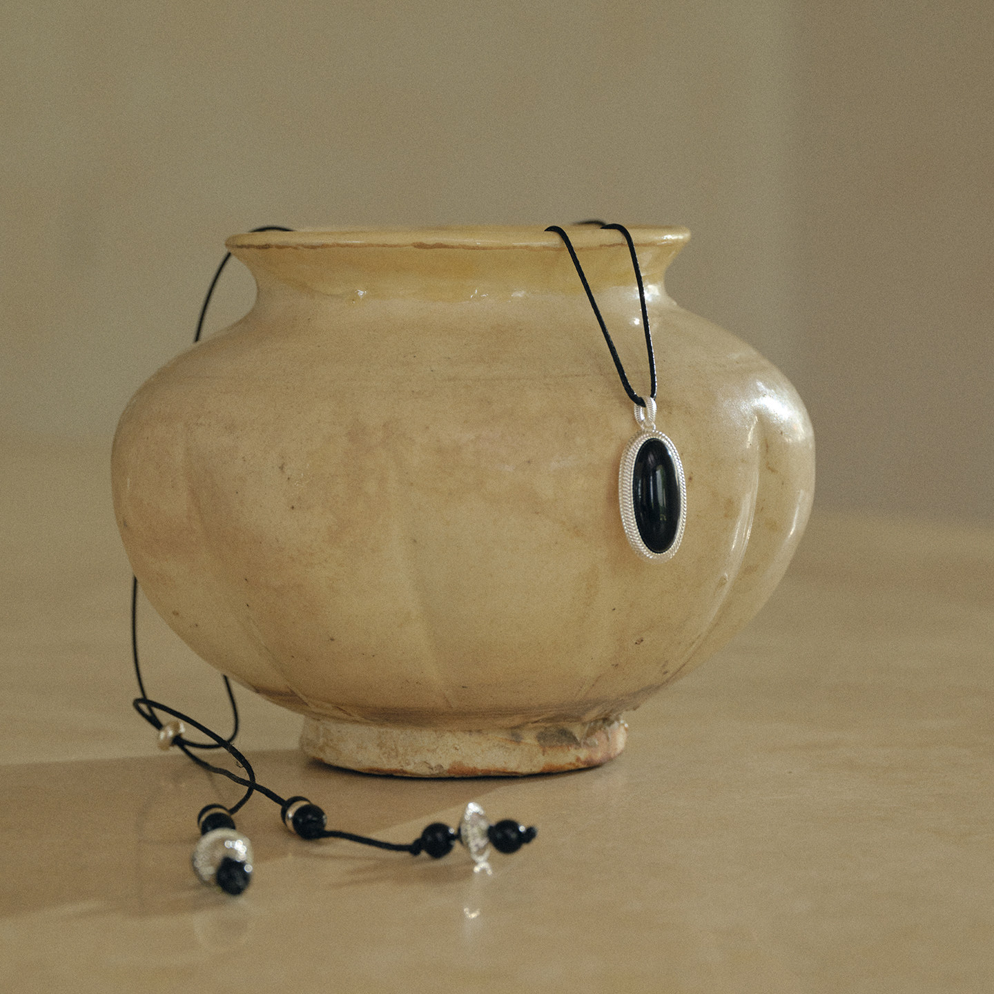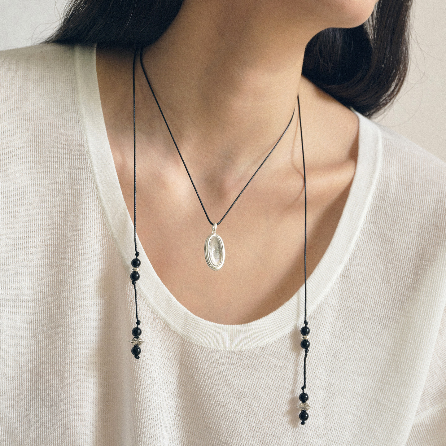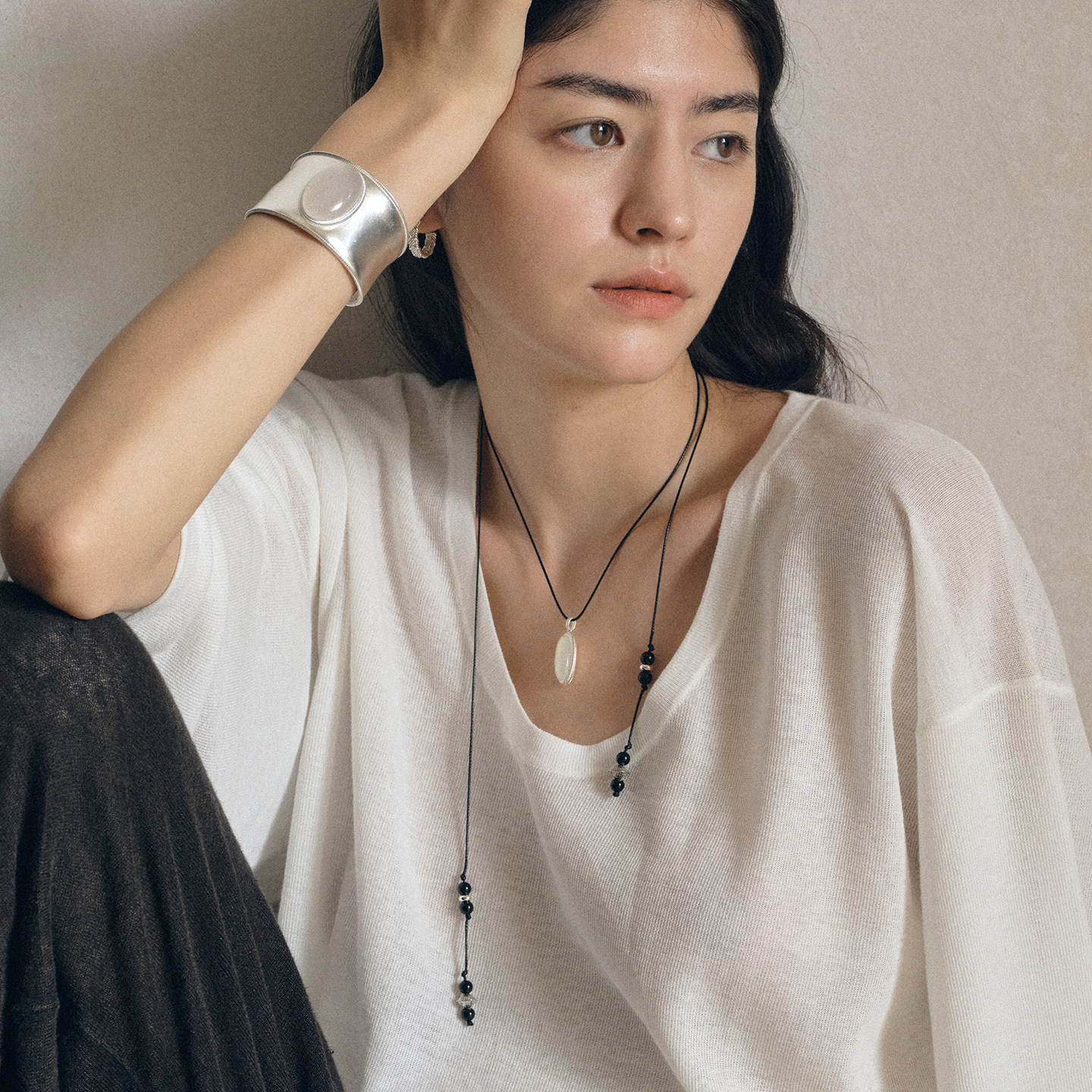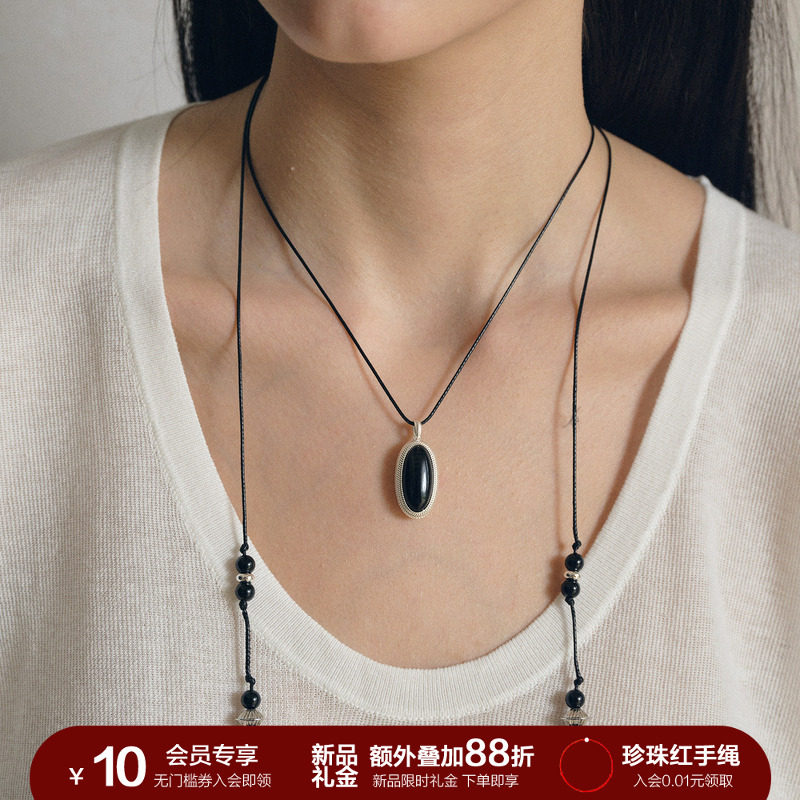 📚 SOFT ROOM包边双面天然玛瑙黑绳长项链女配饰礼物小众设计毛衣链