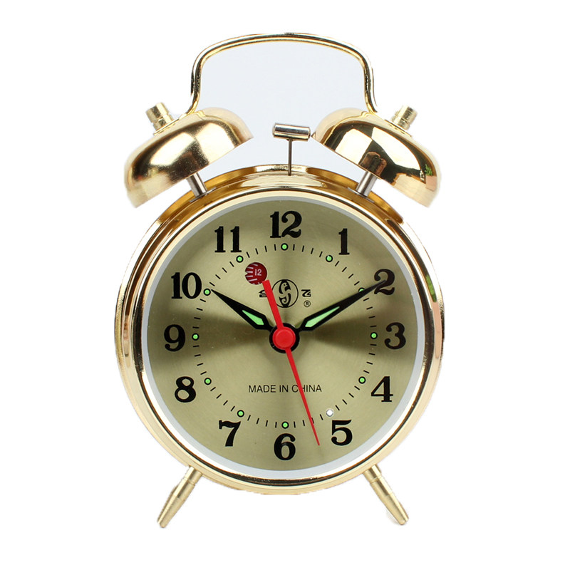 📚 金属发条手动机械双铃金色学生老人钟风水钟滴答老式仿古装饰闹钟