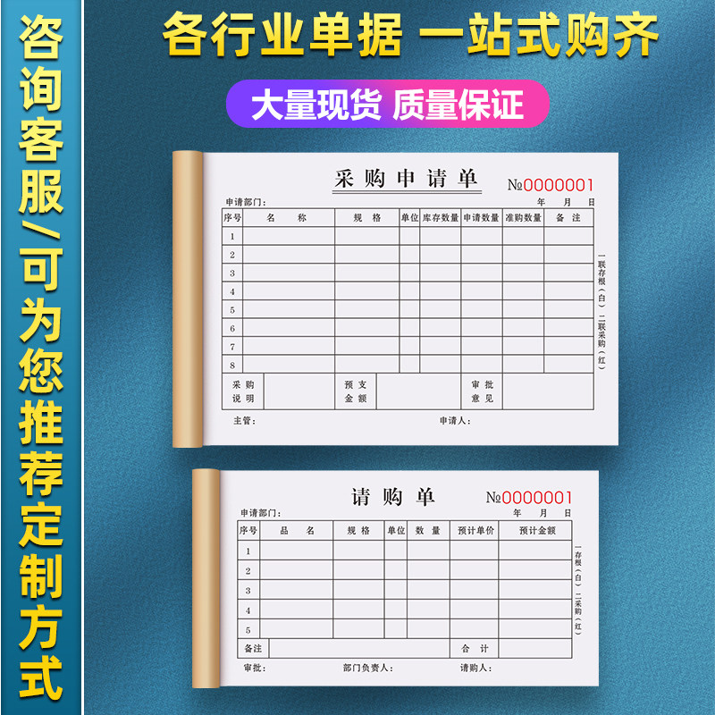 📚 采购申请单二联物品申购单据材料计划表物料审批清单入库报销票据