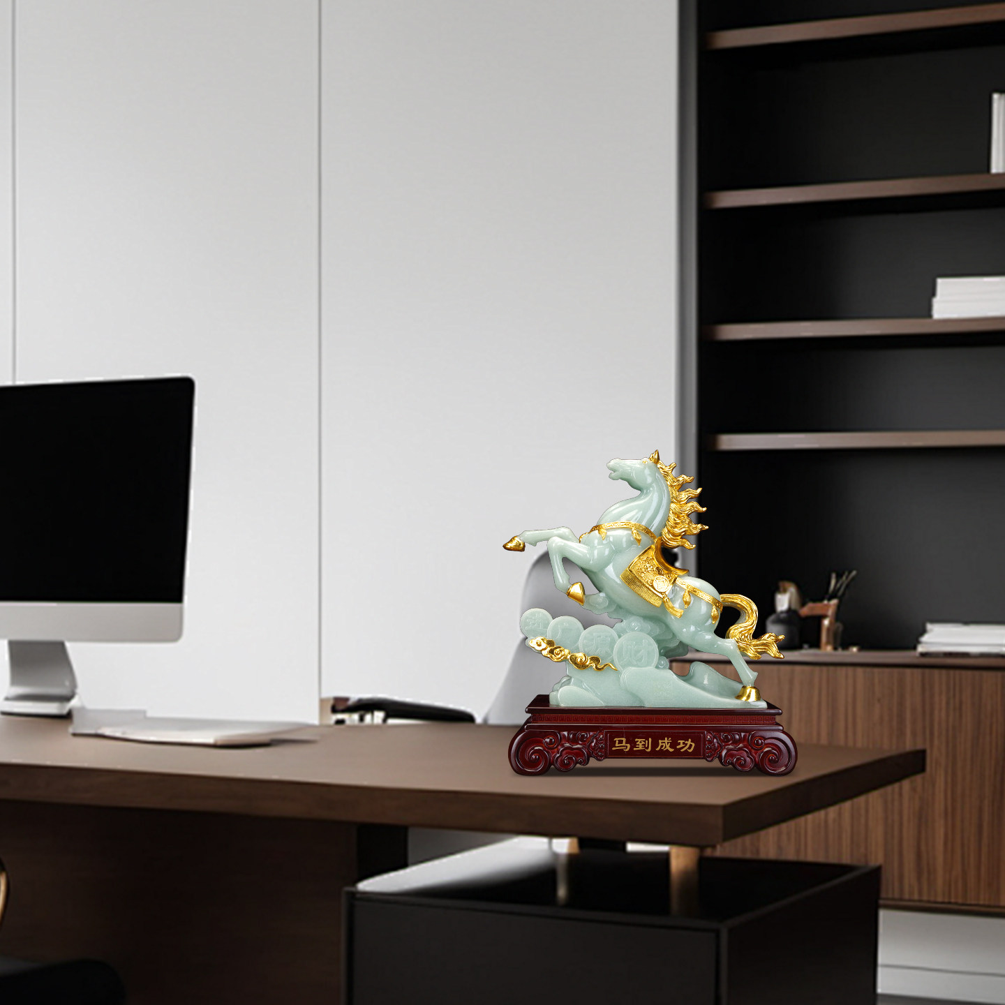 📚 马到成功摆件玉石办公室桌面公司家居客厅装饰品招财生肖马工艺品