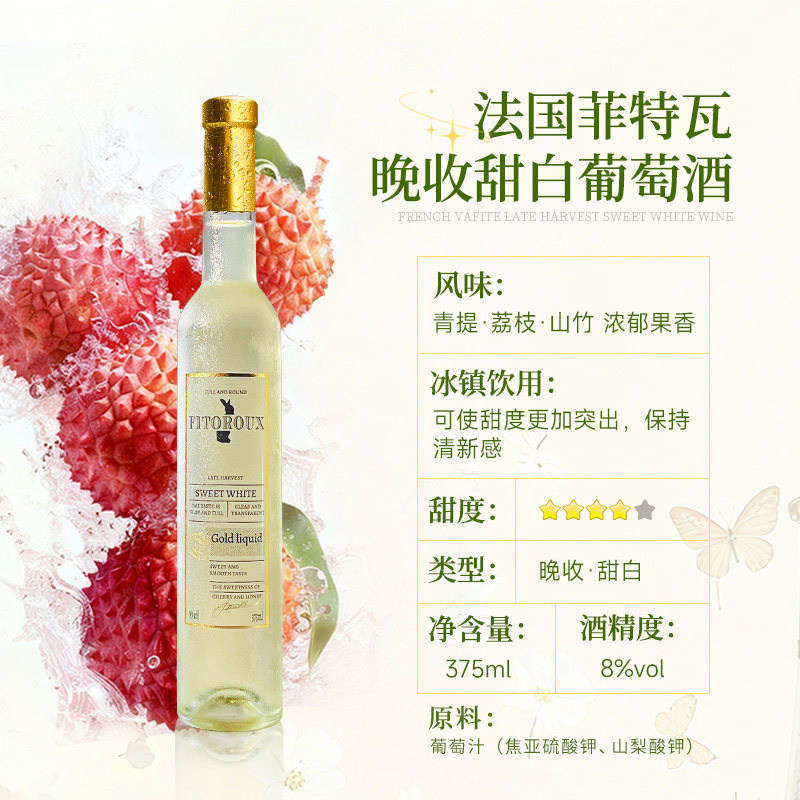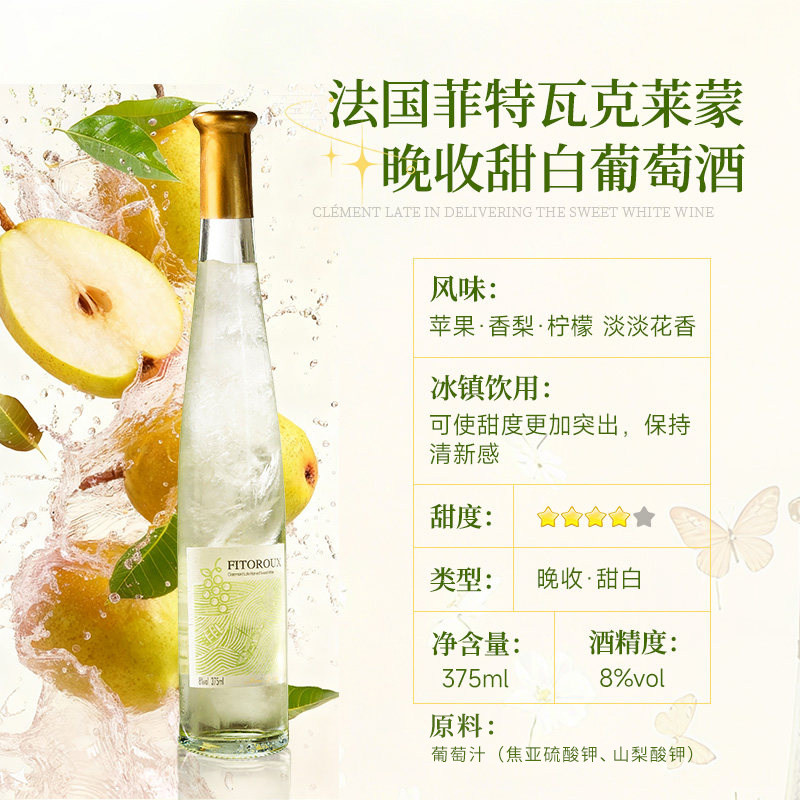 📚 【自营】山竹冰茉莉法国原酒进口晚收甜白葡萄酒微醺礼盒赠香槟杯