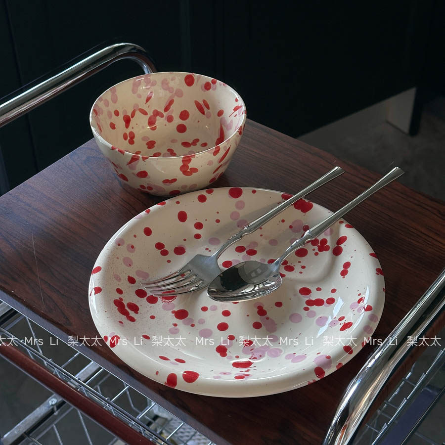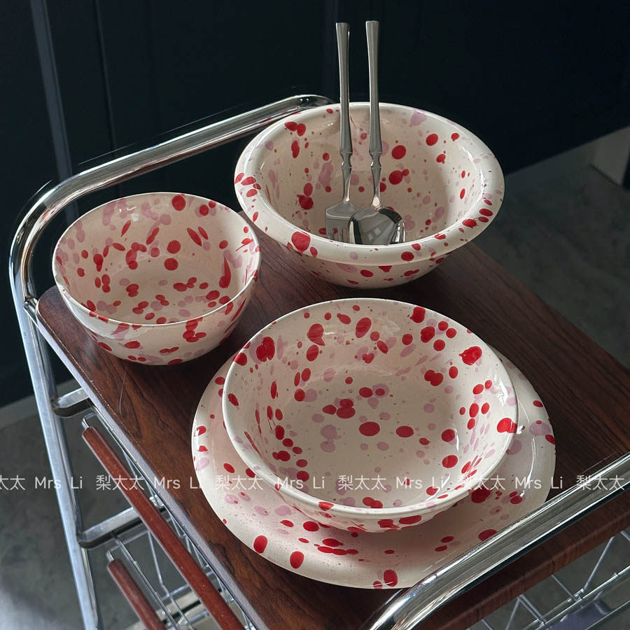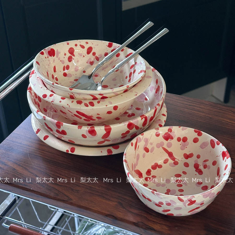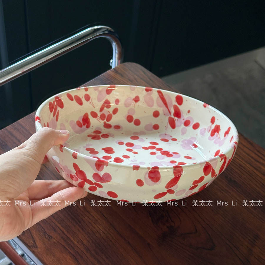 📚 高颜值ins风泼墨气泡陶瓷盘子釉下彩酸奶水果沙拉碗米饭碗家用盘