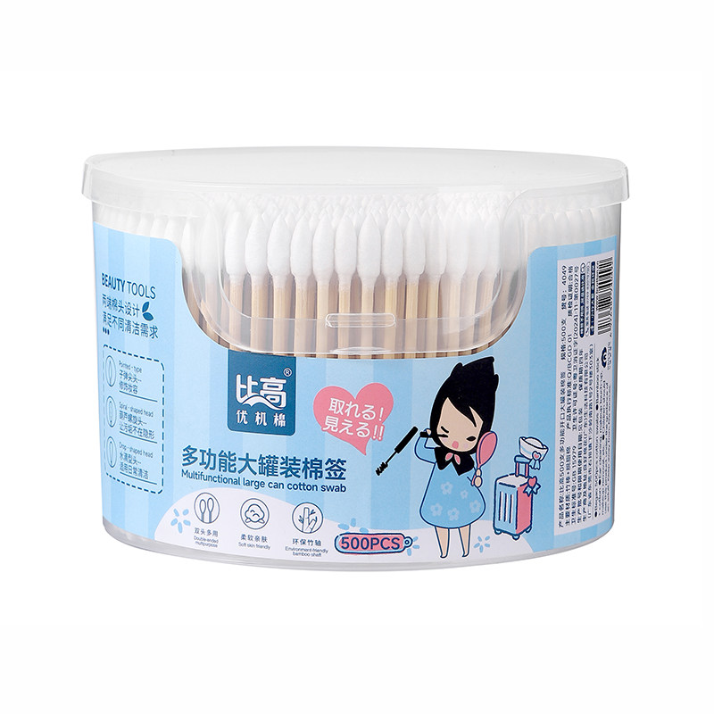 📚 比高多功能开口大罐装棉签(尖圆)500支*1罐