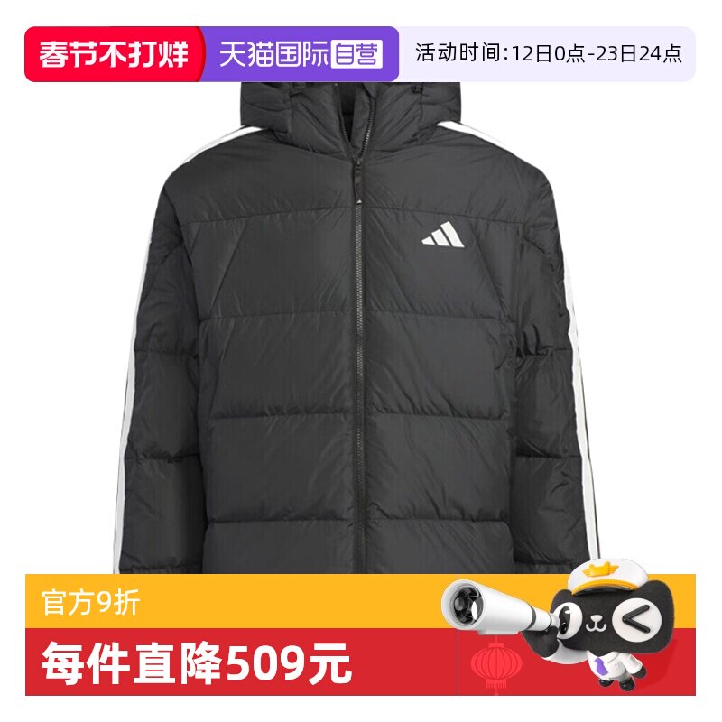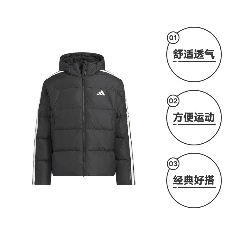 📚 【自营】Adidas阿迪达斯男子三条杠休闲保暖连帽羽绒服外套KC2493