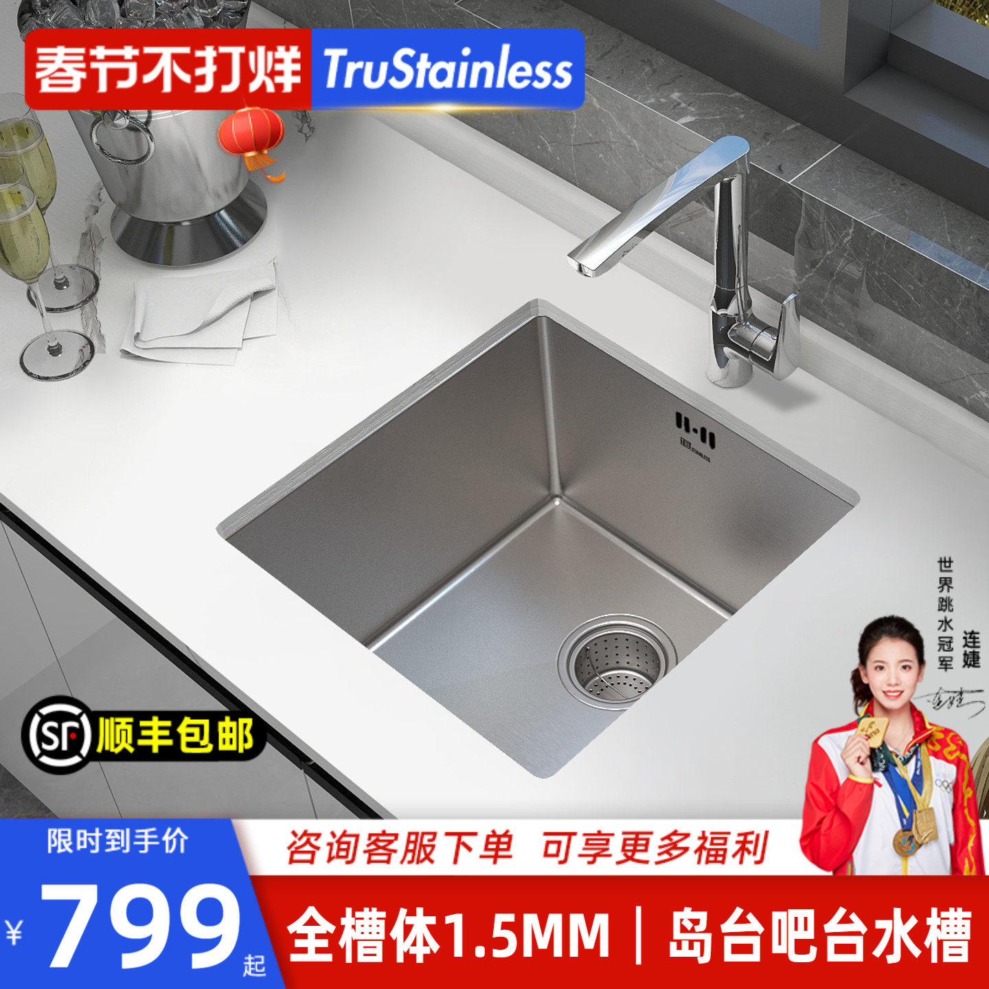 📚 美国TRU厨房304不锈钢迷你小水槽吧台单槽阳台岛台小户型洗菜盆池