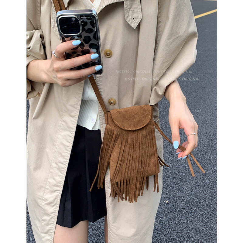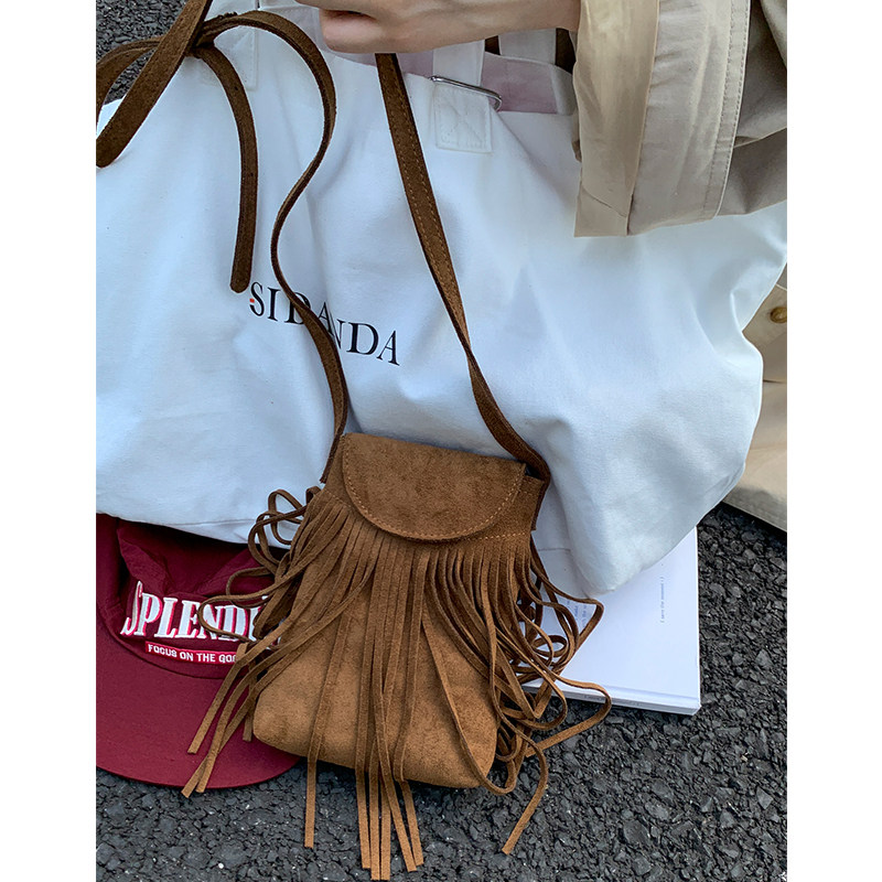 📚 废土牛仔风斜挎小包包女式2025新款美拉德棕色波西米亚复古流苏包
