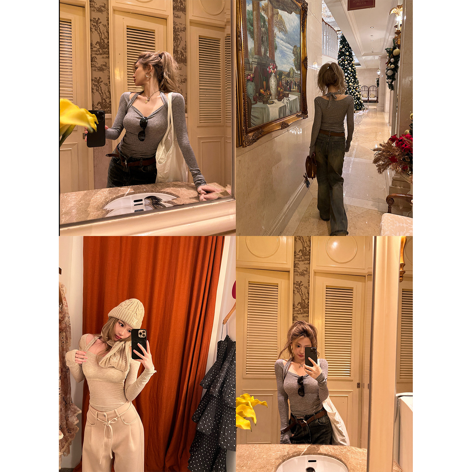 📚 Xinlei Lin 云感呼吸 天丝羊毛挂脖绑带修身方领打底衫针织衫