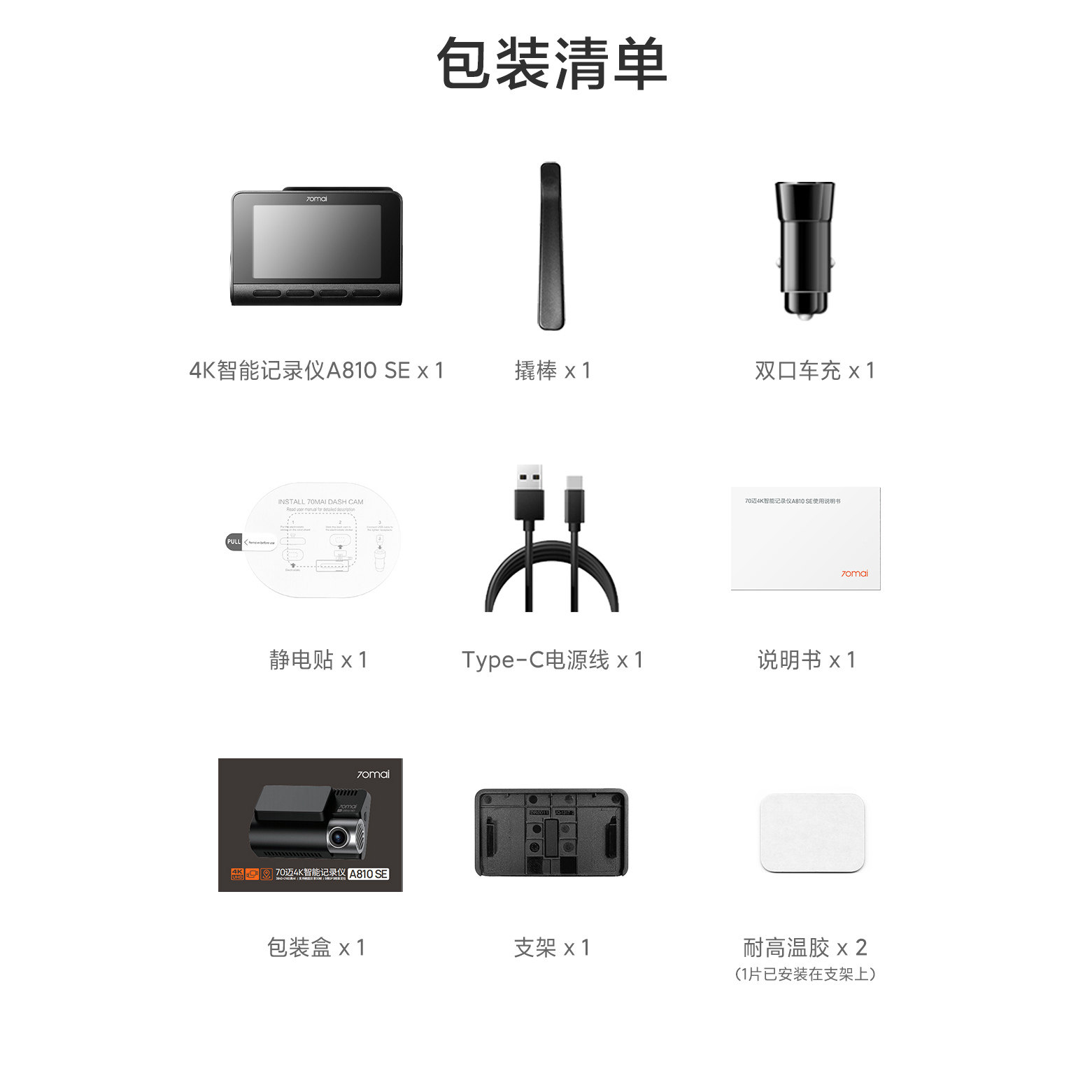 📚 70mai行车记录仪a810se高清夜视汽车车载停车监控2025新款