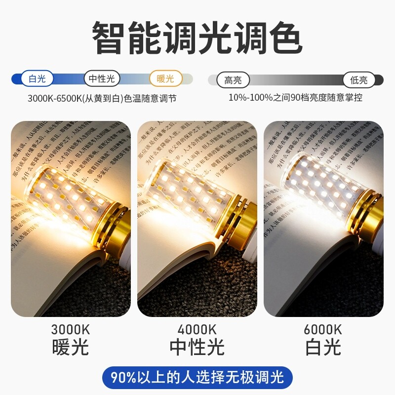 📚 支持米家APP智能语音LED灯泡全光谱调光调色E27螺口E14柱形玉米灯