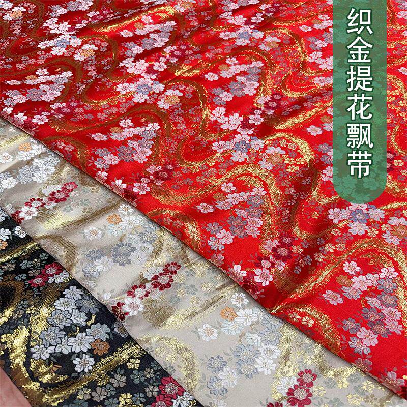 📚 织金提花飘带花西阵织和风布料背心马甲新中式袖口边发夹带等面料