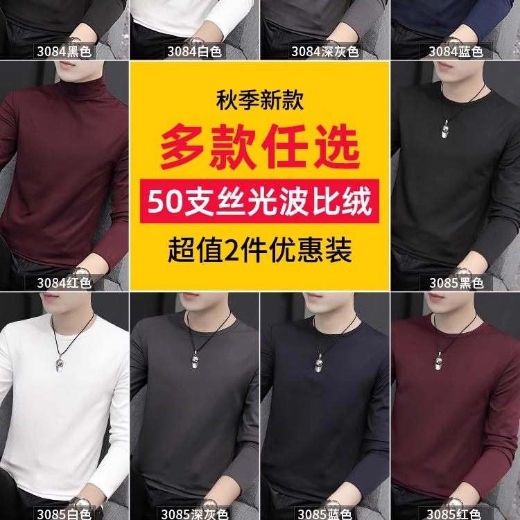 📚 丝光波比绒半高领打底衫男冬季加厚加绒中领长袖t恤保暖内搭上衣