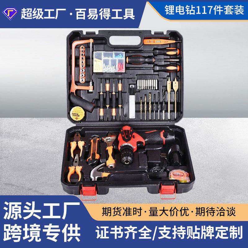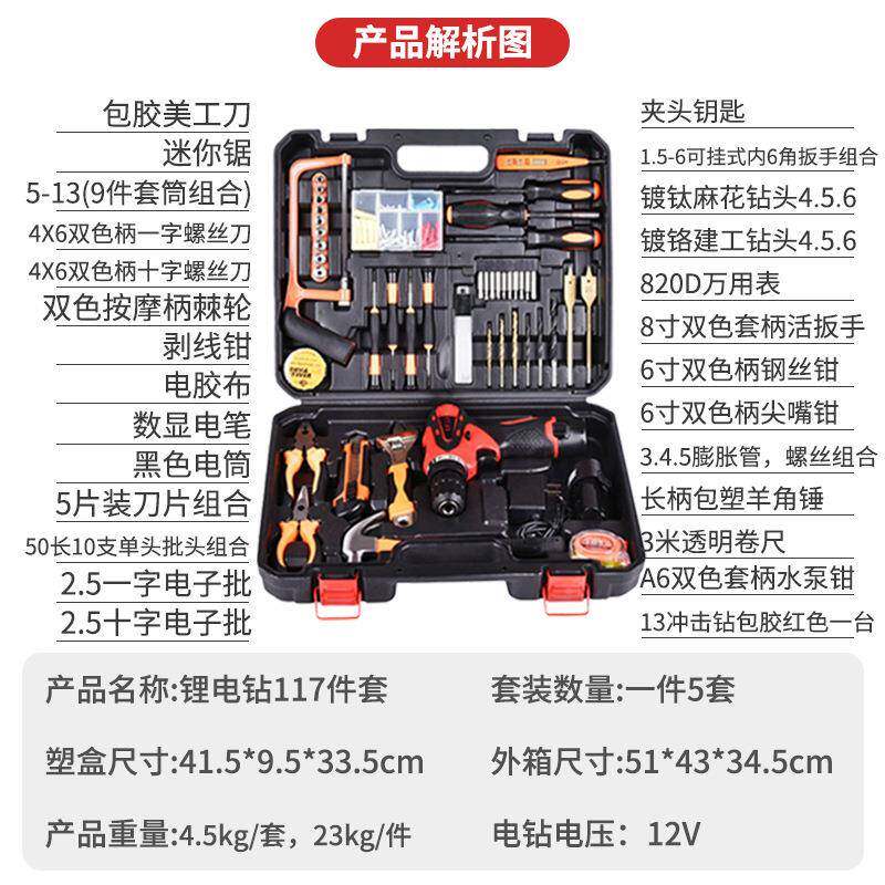 📚 五套金工具装丝家用工维修工587具箱电动螺刀工具箱锂电电电钻工