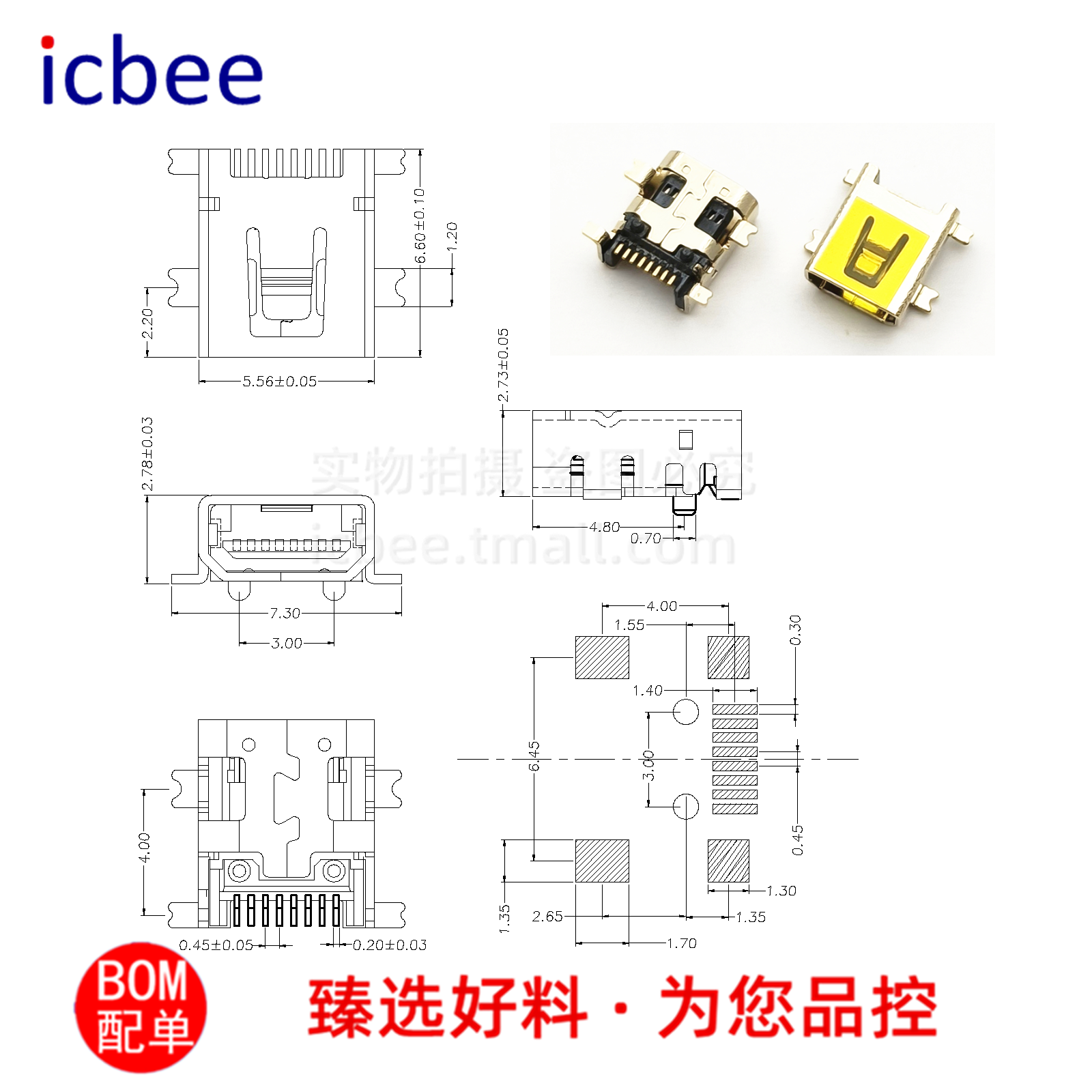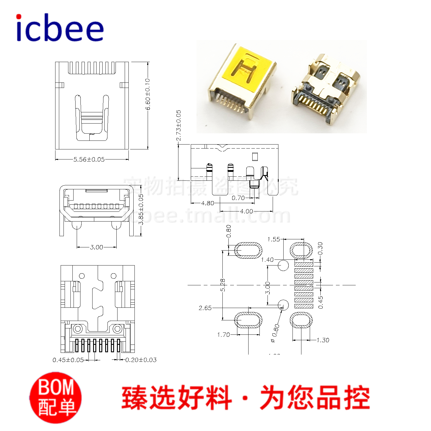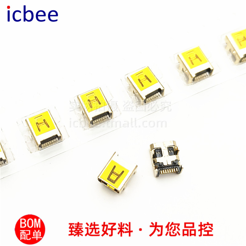 📚 USb母座迷你尾插8针4固定脚镀金V3全铜镀金MINI全贴直插充电母座