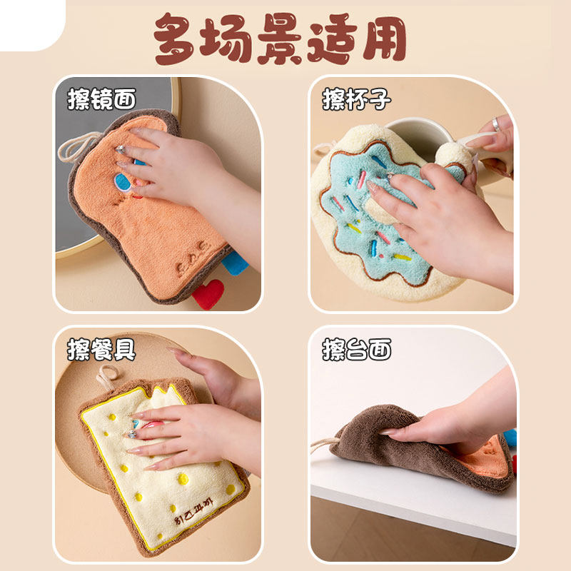 📚 可爱擦手巾厨房擦手毛巾挂式卫生间吸水三层加厚抹布家用儿童手帕