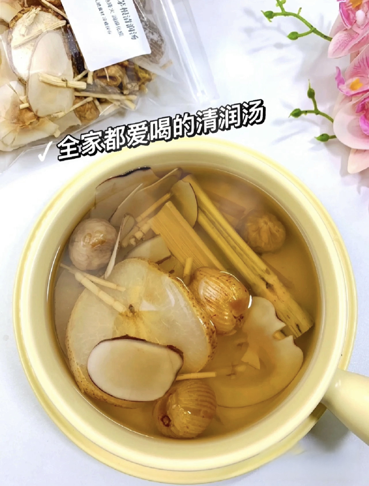 📚 竹蔗茅根雪梨水儿童广式糖水清热下火滋阴生津无花果海底椰蜜枣