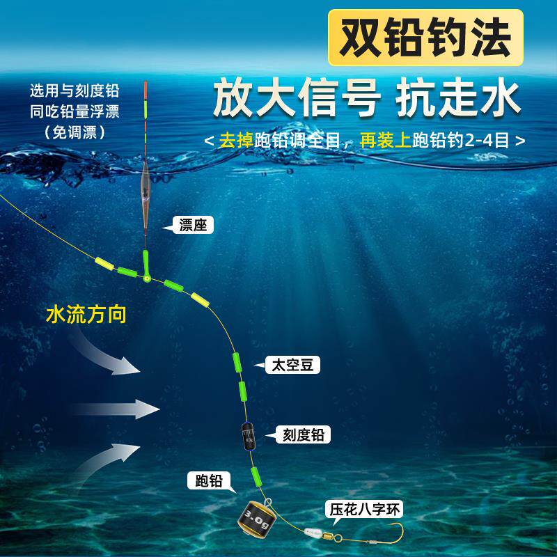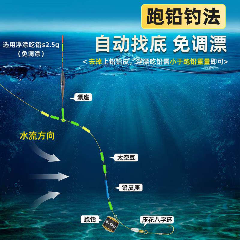 📚 双铅线组成品主线套装抗走水专用自动找底免调漂新型跑铅线组可拆