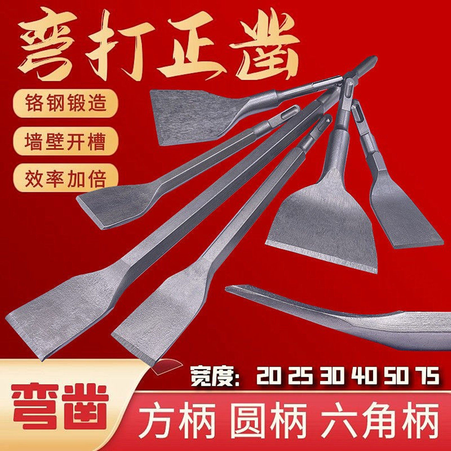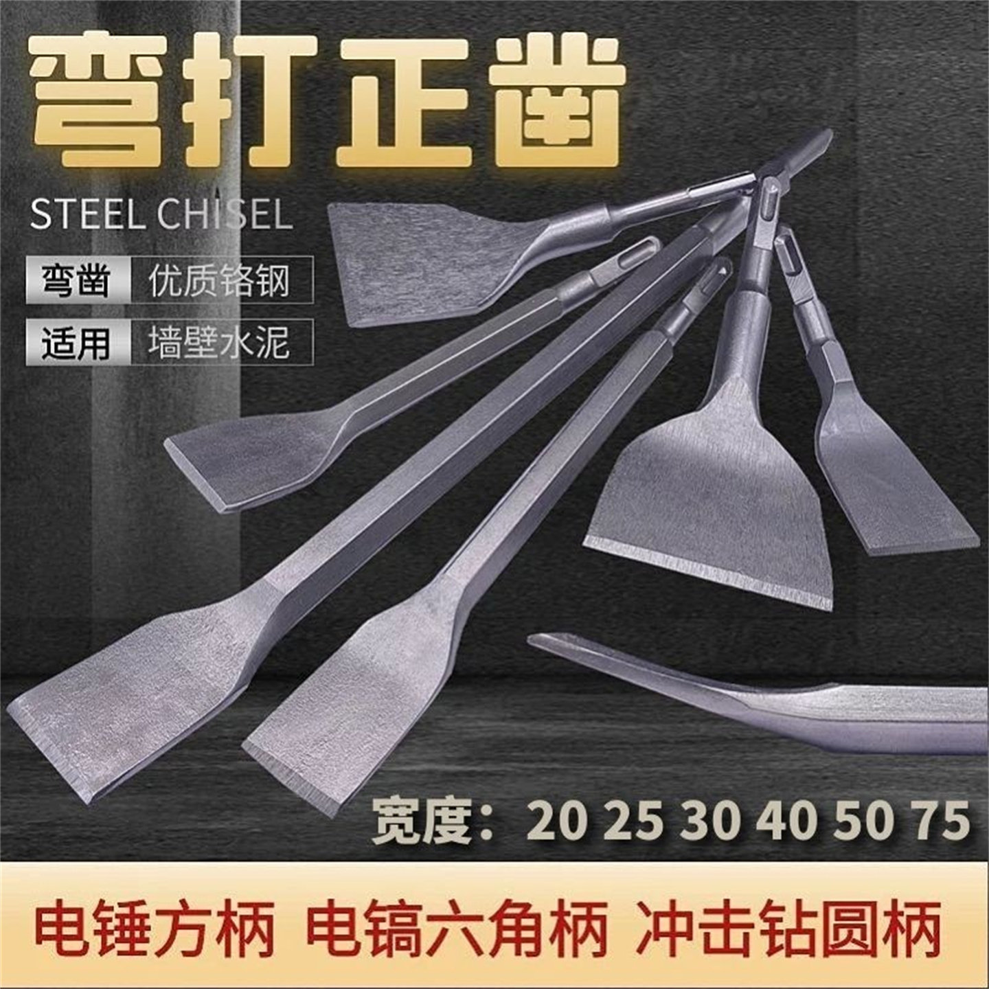 📚 电锤冲击钻头方柄六角柄弯扁凿子镐钎电镐头铲子加宽凿开槽穿墙钻