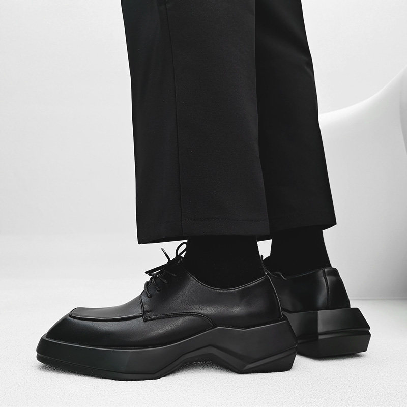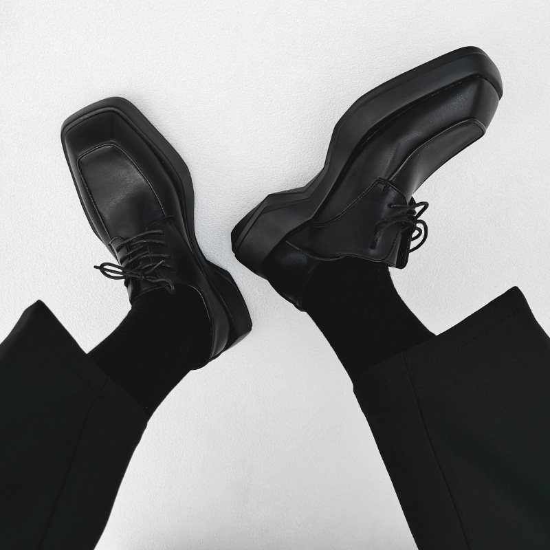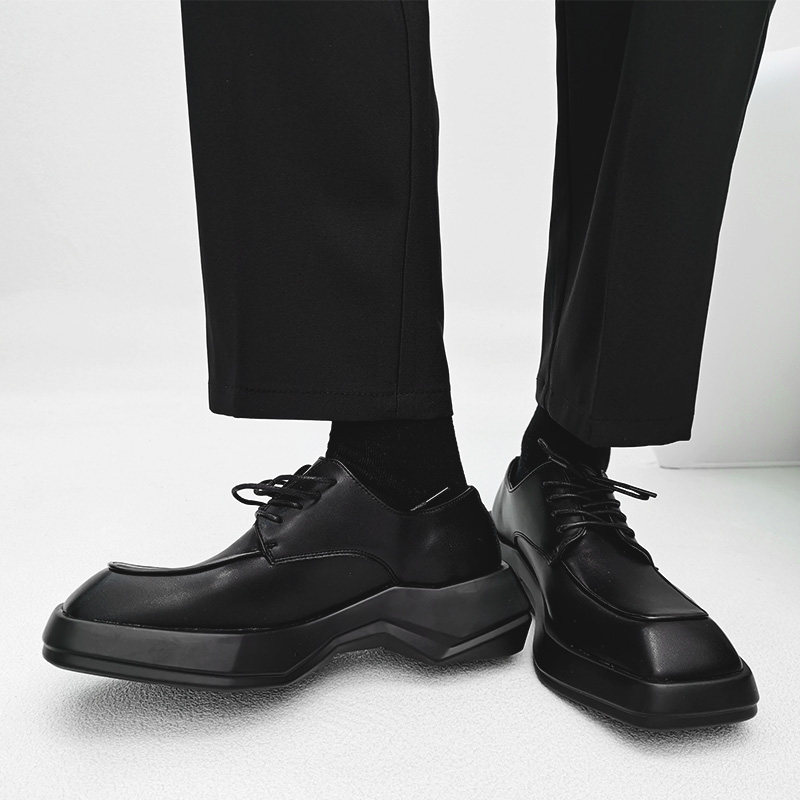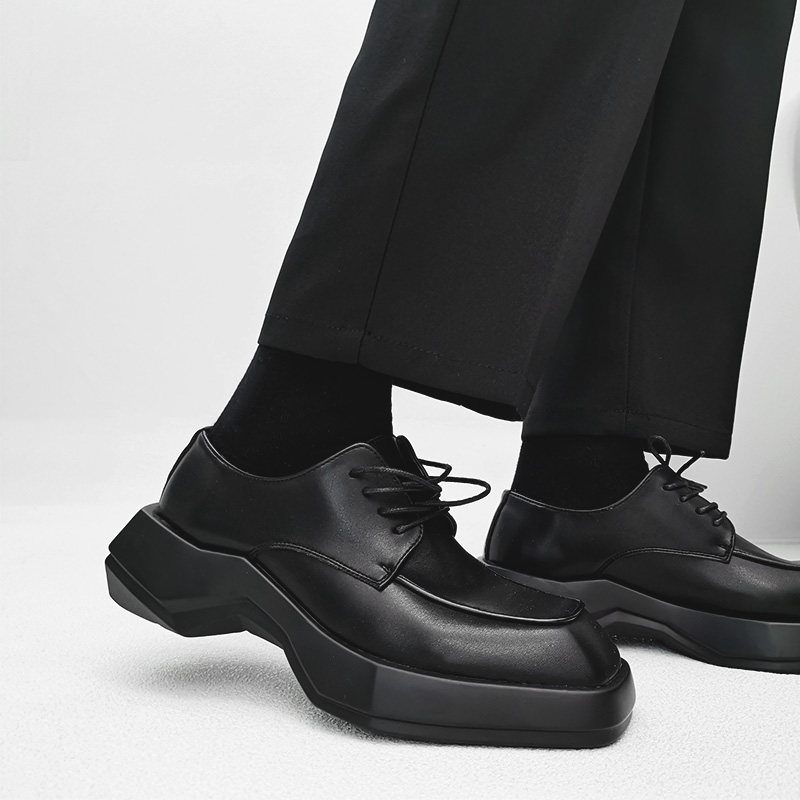 📚 小众方头德比鞋男英伦雅痞风高级感厚底增高皮鞋发型师正装结婚鞋