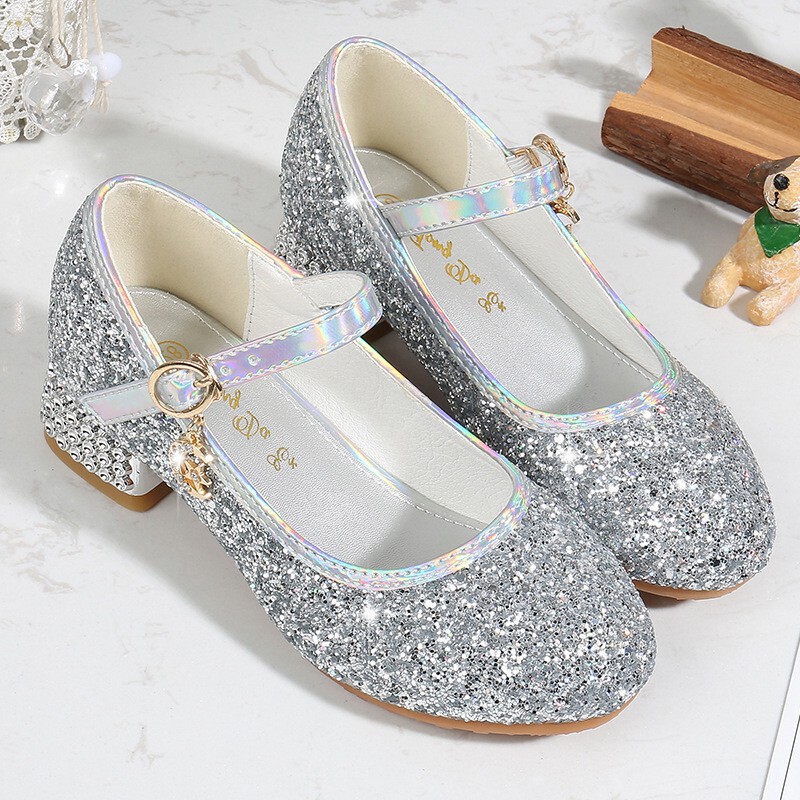 📚 女童公主水晶鞋走秀表演出鞋子主持人礼服鞋银色单皮鞋儿童高跟鞋