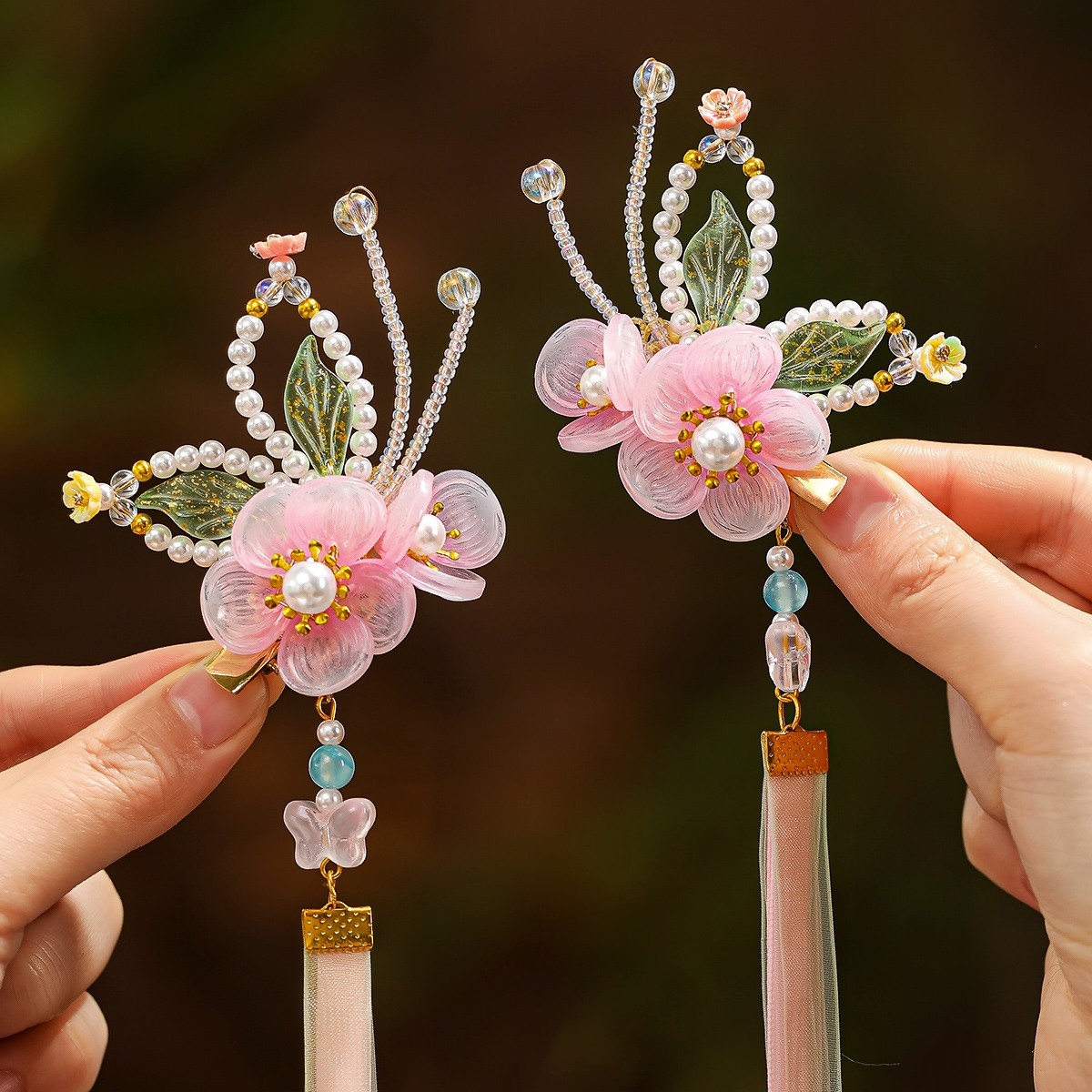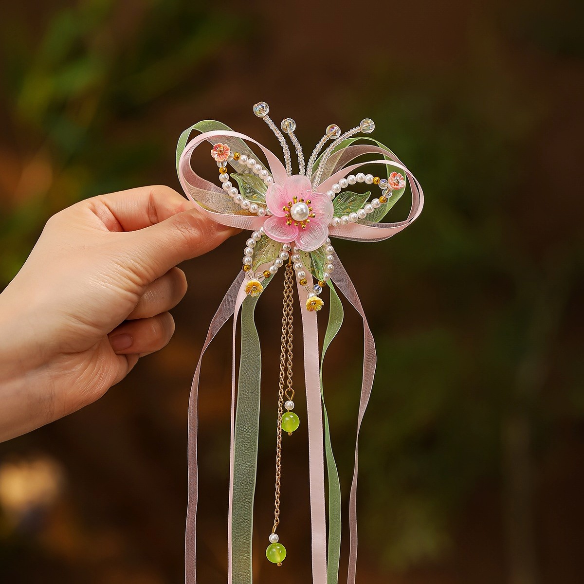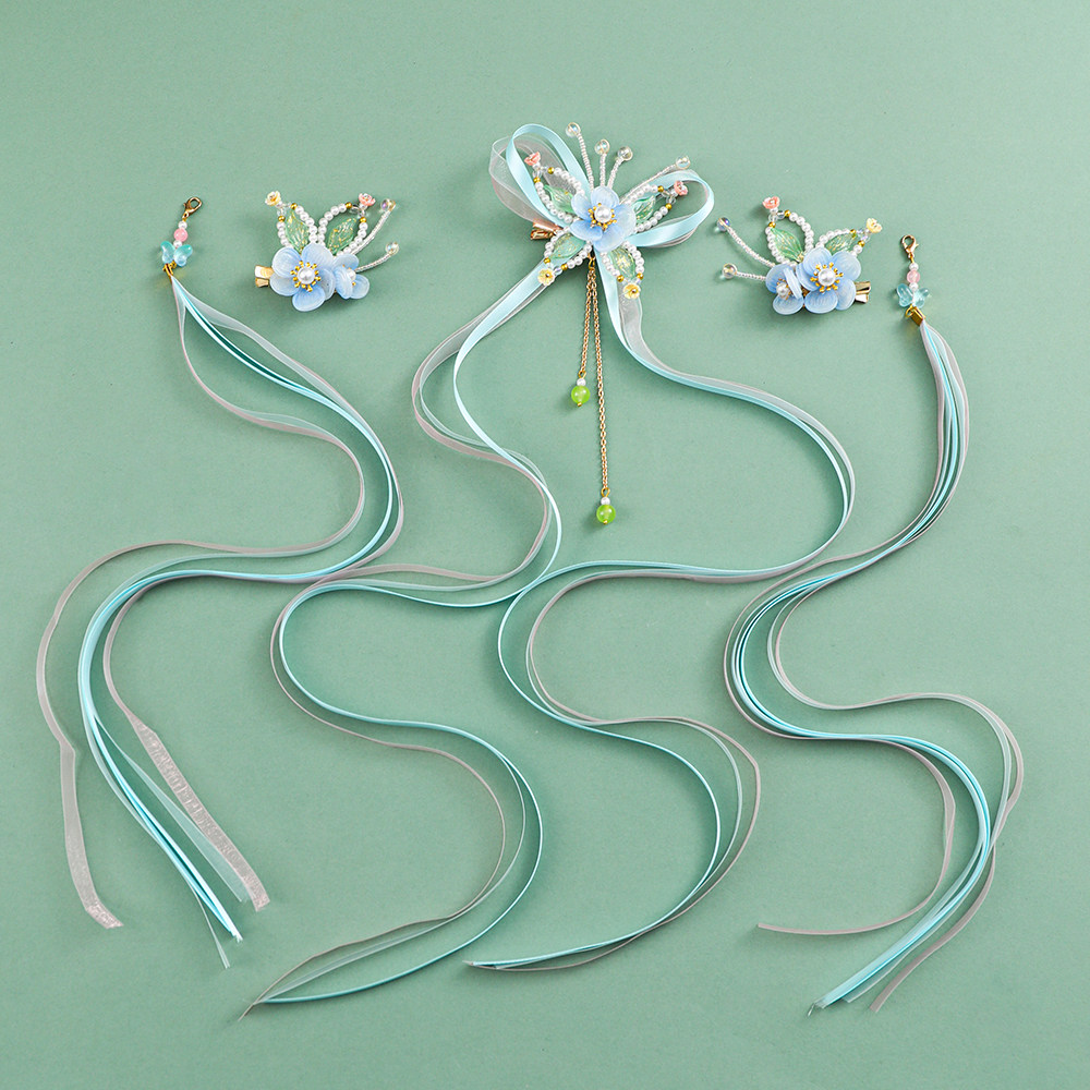 📚 汉服头饰女儿童古装仙气发夹发饰女童古风飘带配饰夹子蝴蝶发卡女