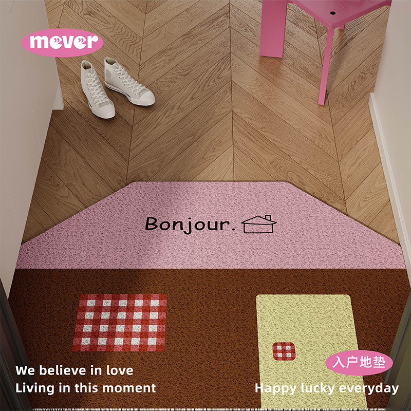 📚 韩系奶油风小屋入户地垫丝圈防滑耐脏脚垫进门玄关大门口除尘地毯