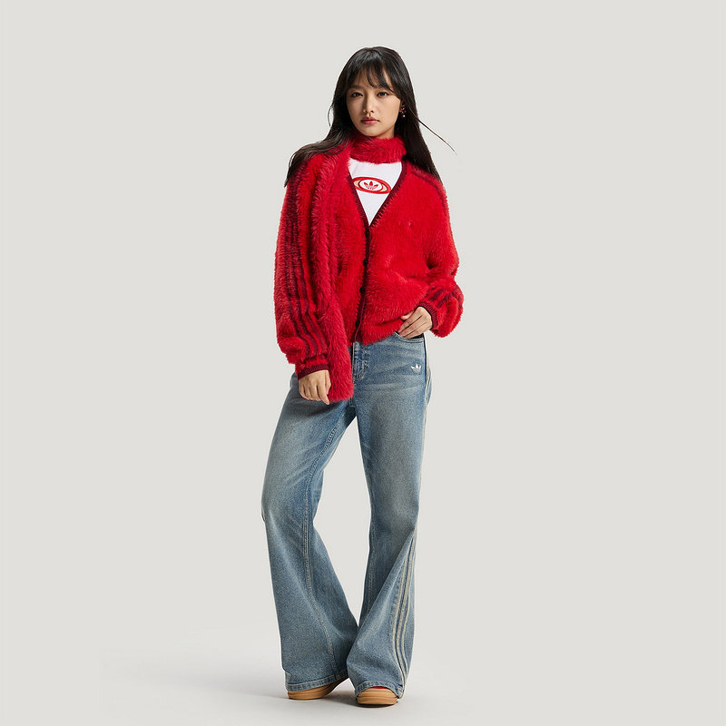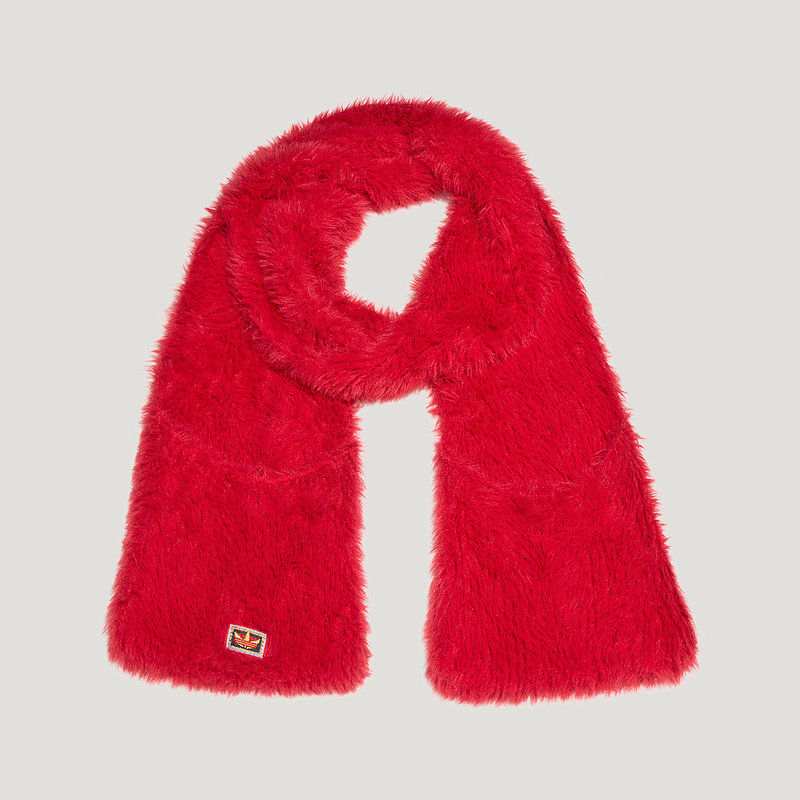 📚 adidas阿迪达斯三叶草马年新年款红色毛绒口袋围脖女围巾KH0284