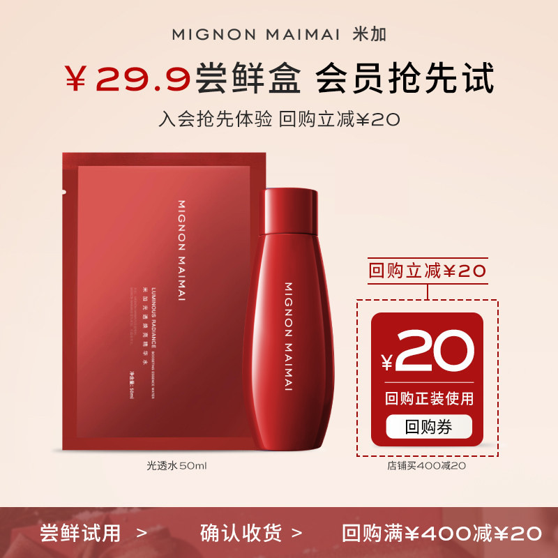 📚 【天猫U先】米加光透焕亮精华水乳保湿淡纹护肤养肤50ml体验装