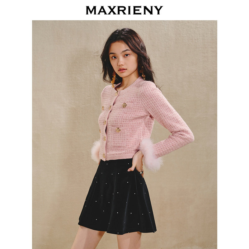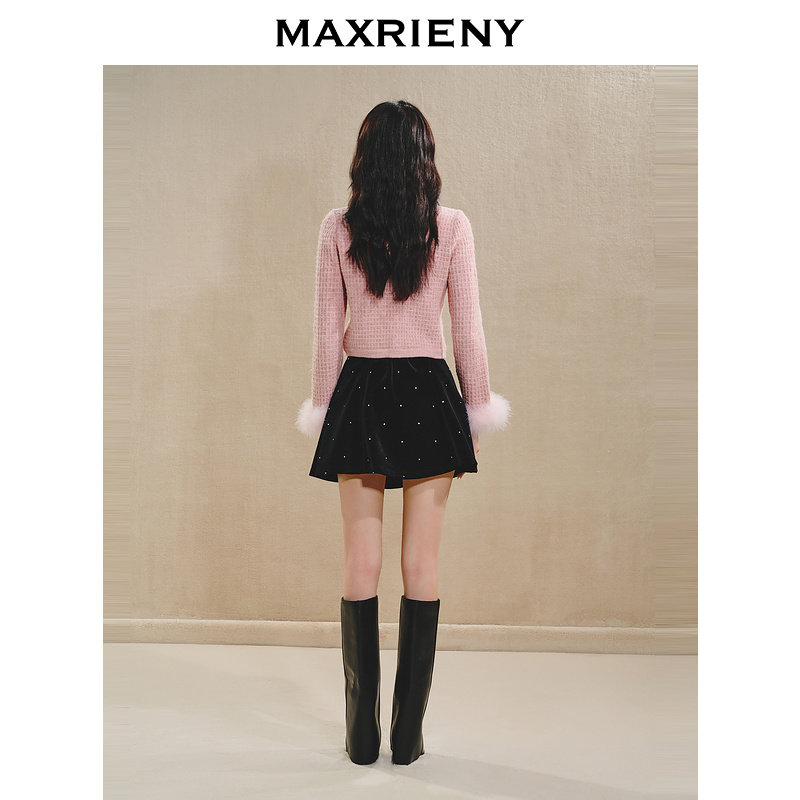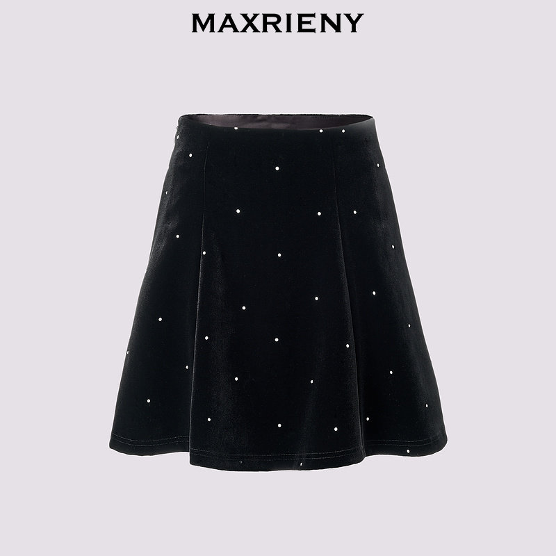 📚 【商场同款-新年红系列】MAXRIENY法式复古丝绒半裙A字收腰短伞裙