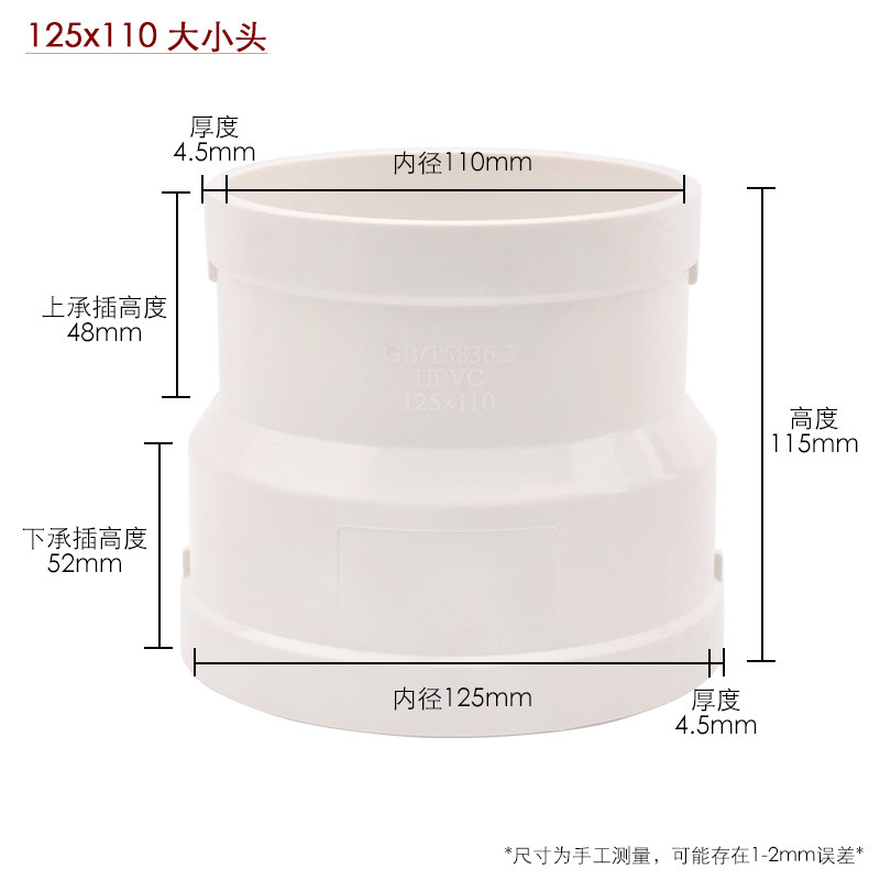 📚 pvc排水管125风管 油烟机排烟管加厚排风 新风管 125弯头变径接头