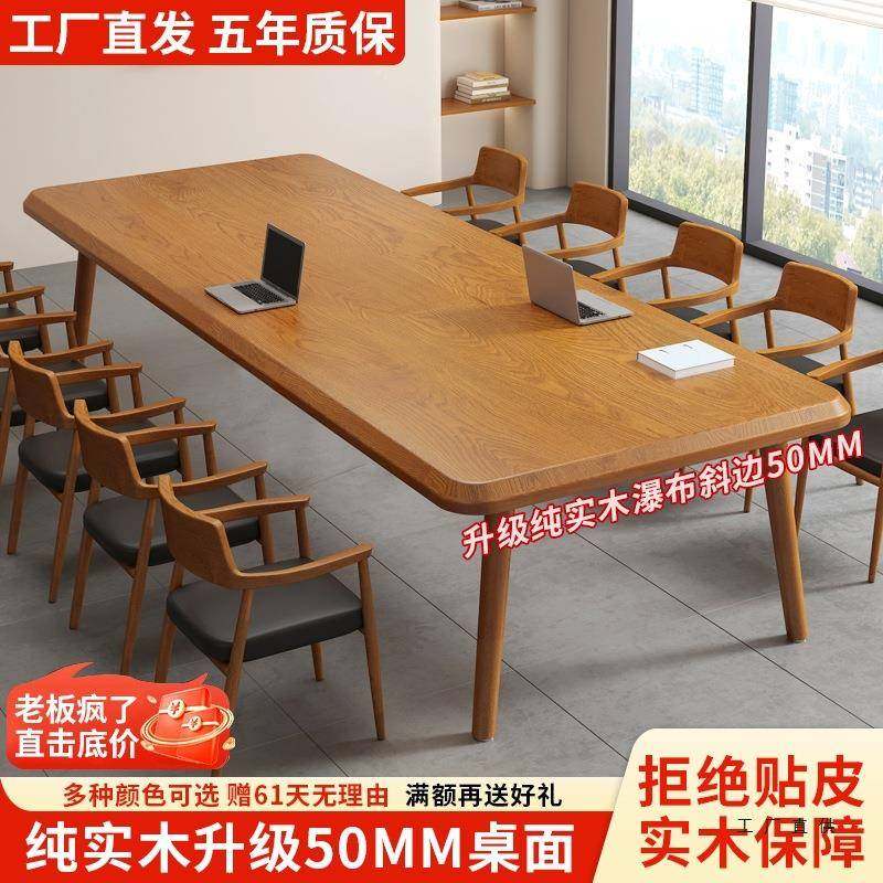 📚 实木电会议作桌长条985大板桌现约代简多人脑桌书桌办公桌洽谈桌