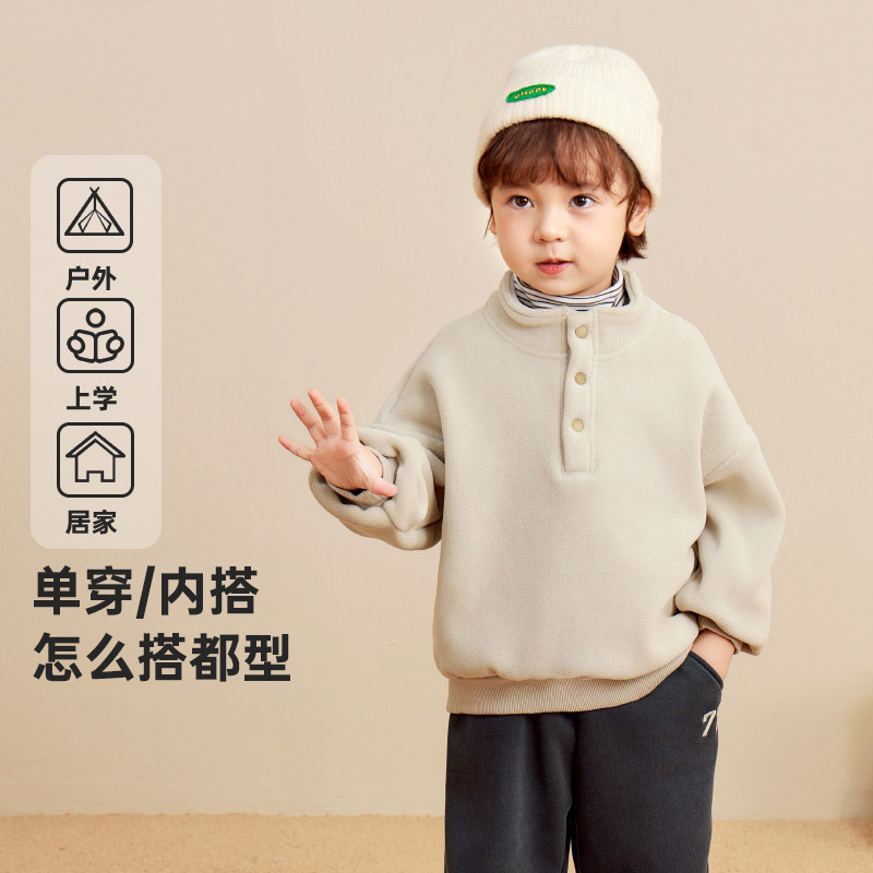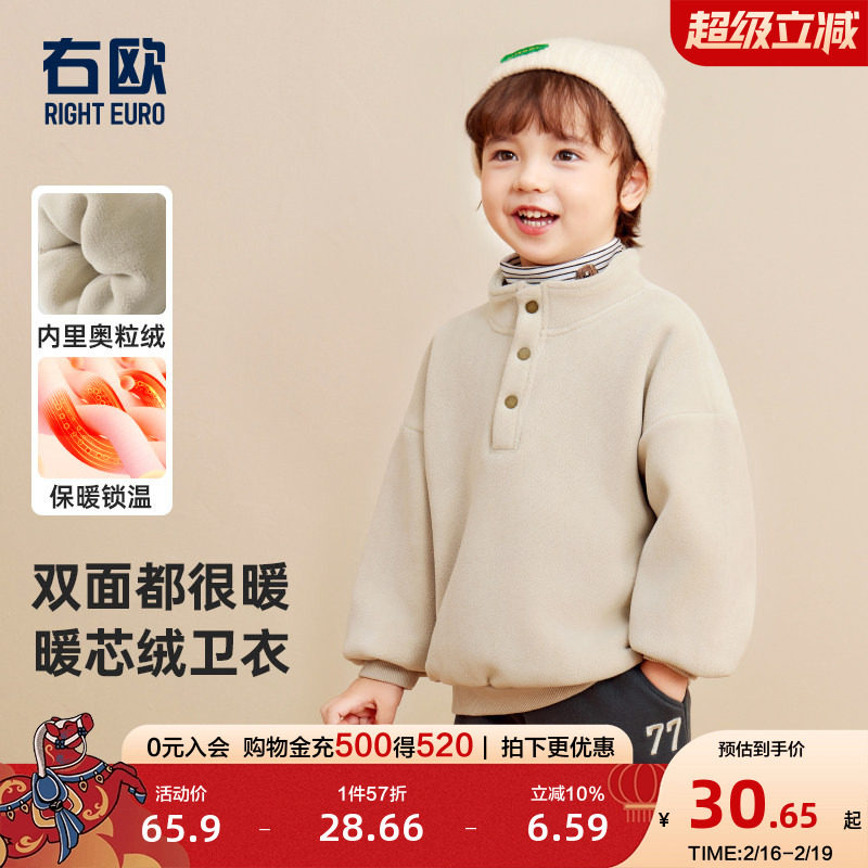 📚 右欧童装儿童立领奥粒绒加绒卫衣春秋冬新款男童女童加厚保暖上衣