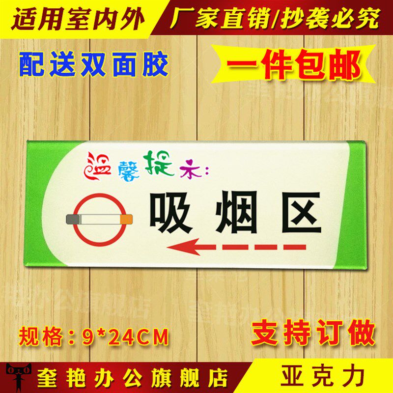 📚 酒店公共场所吸烟区箭头导向指引牌无烟室温馨提示牌禁烟标识贴牌