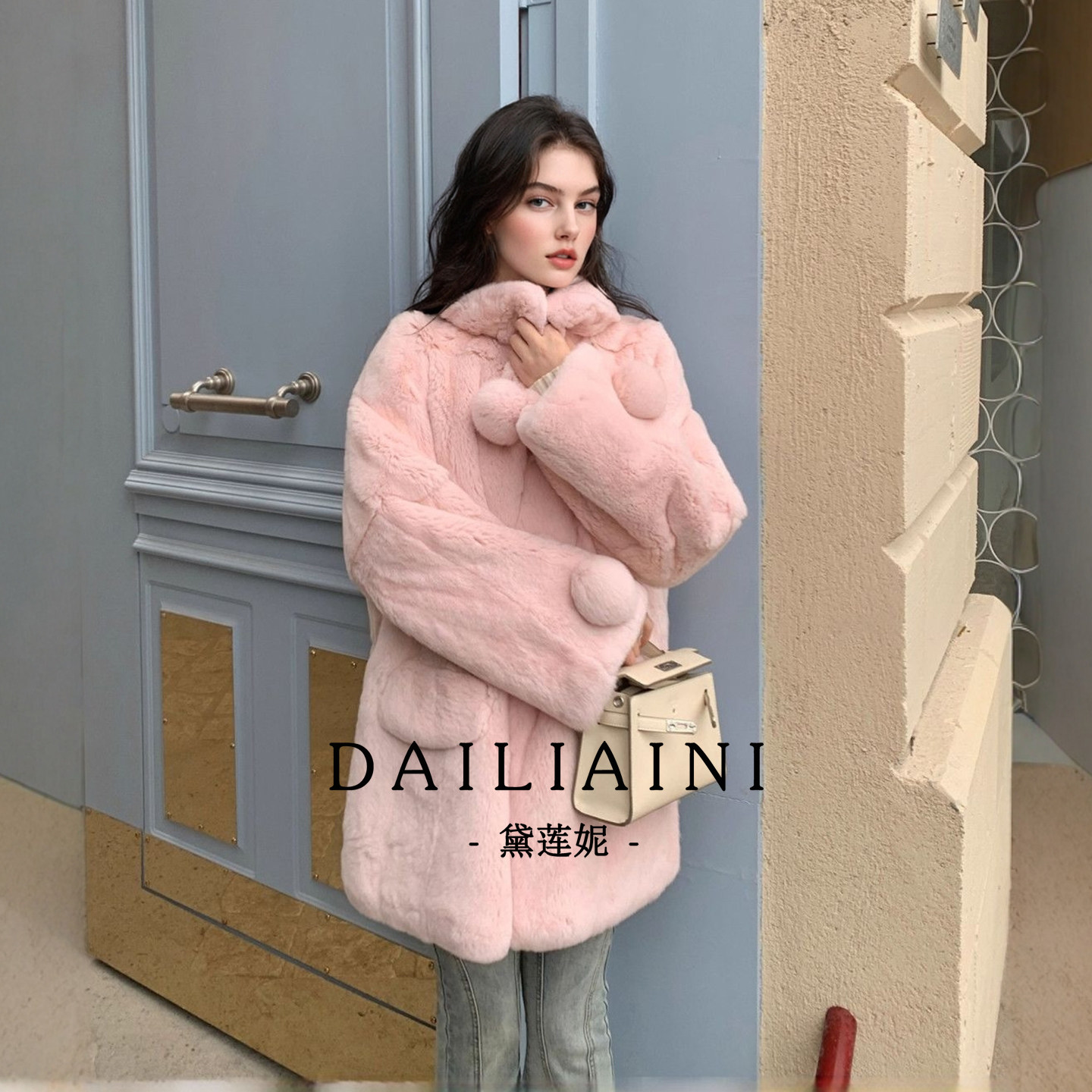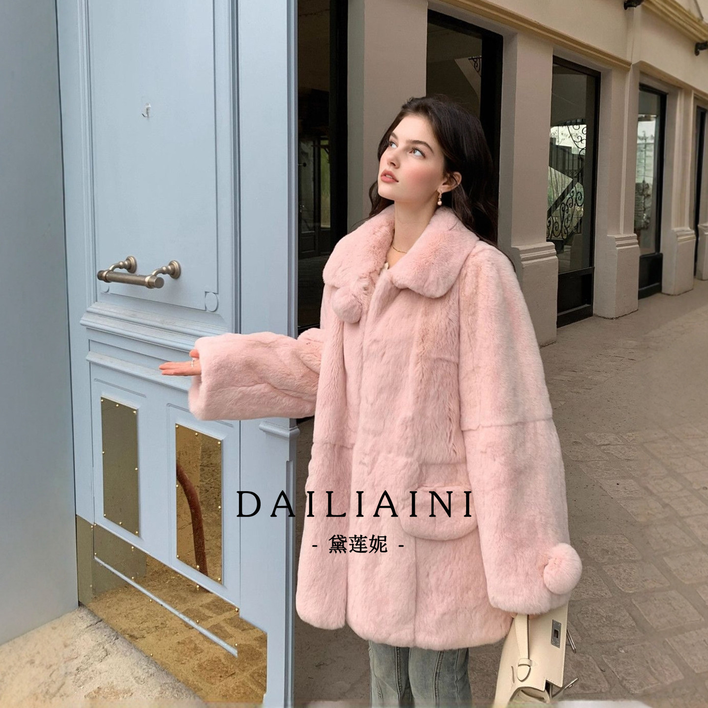 📚 雪国少女粉色仿整皮獭兔毛翻领中长款皮草外套女装2025年冬季新款