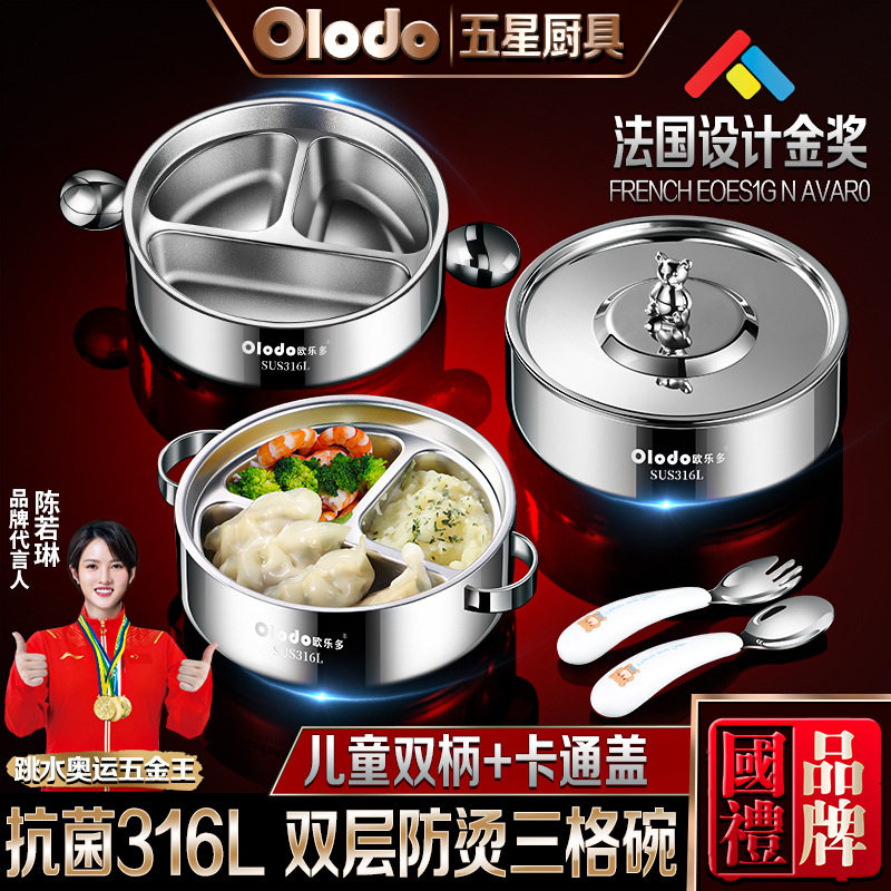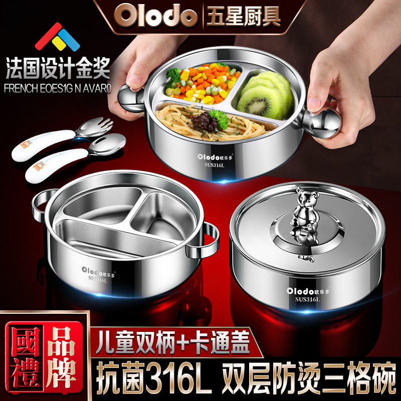 📚 日本进口MUJIΕ无印幼儿园餐盘儿童分格316不锈钢宝宝吃饭碗双层