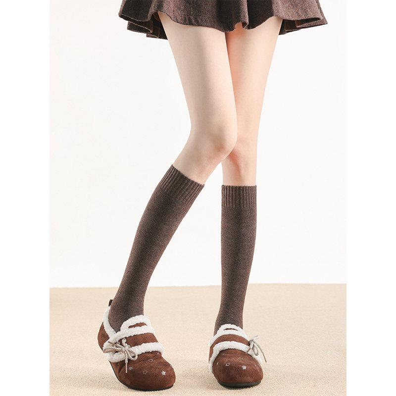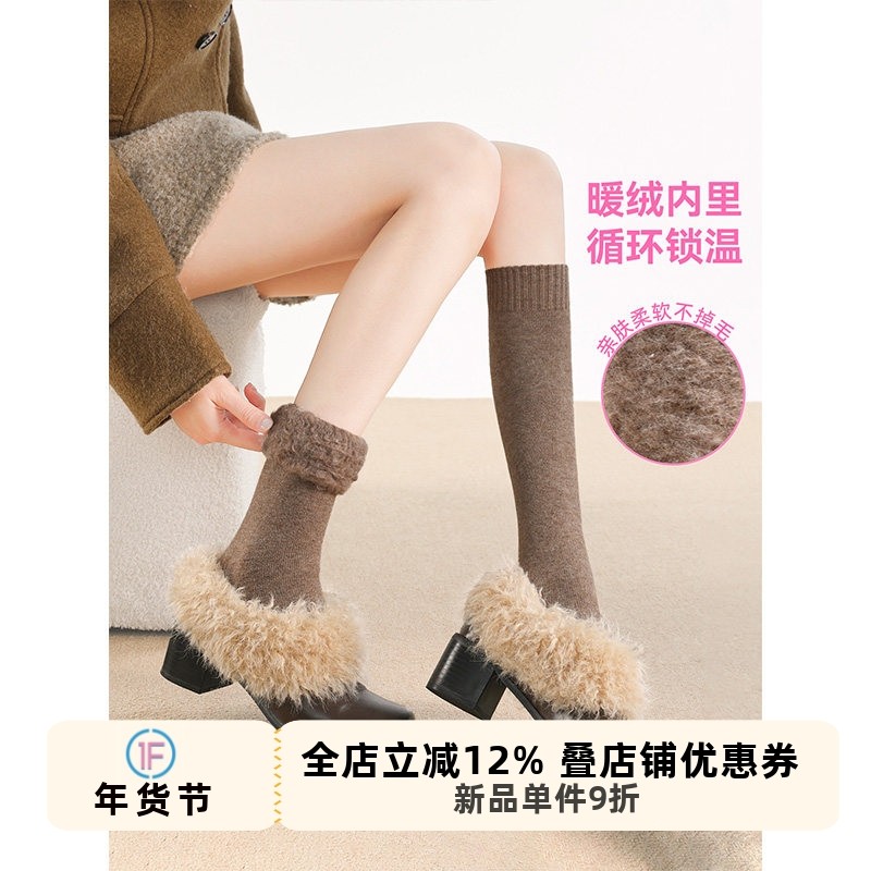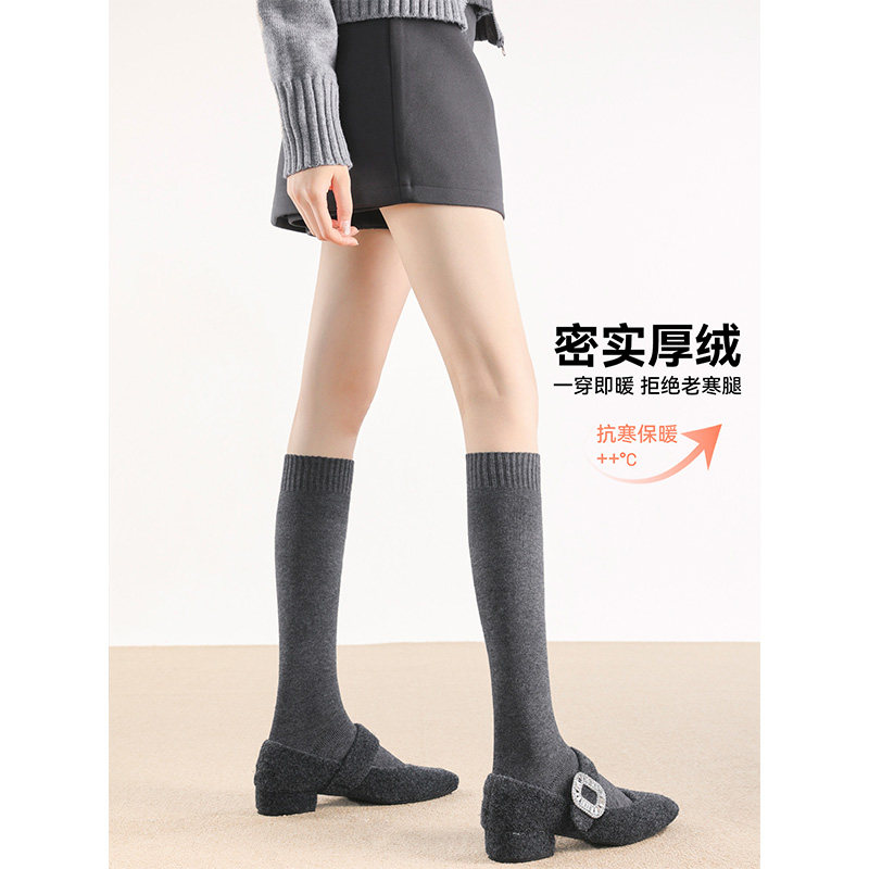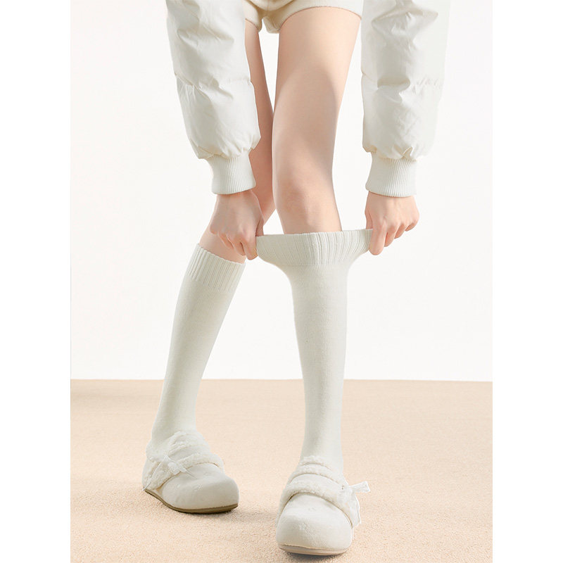 📚 抵达一楼秋冬加绒加厚小腿袜简约百搭保暖防滑中筒袜白色月子袜