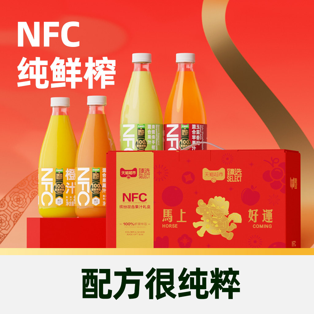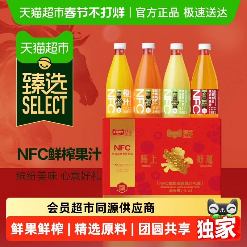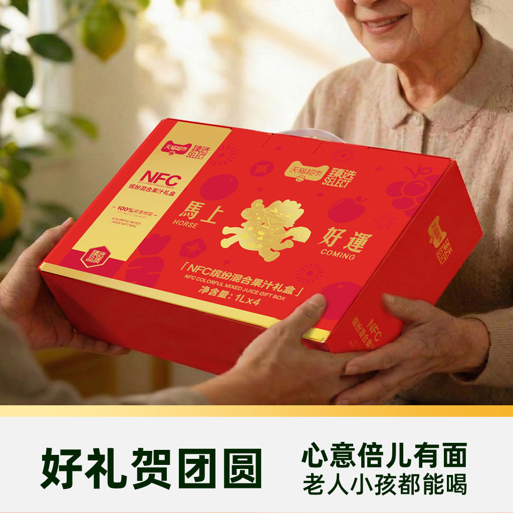 📚 臻选100%鲜果榨汁NFC果汁饮料饮品1L*4混合果汁团圆家宴礼盒