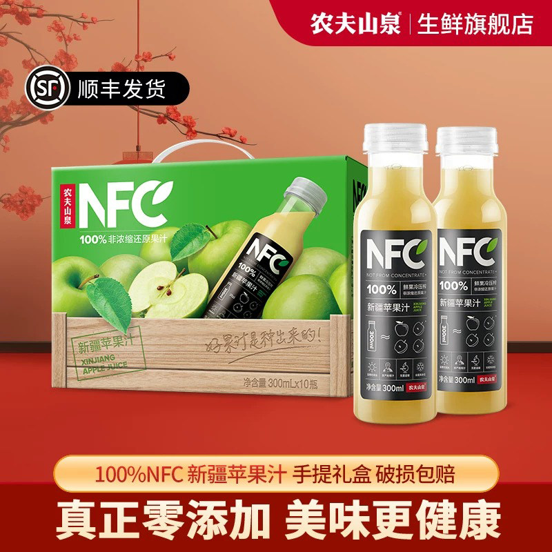 📚 农夫山泉nfc果汁饮料100%纯新疆苹果汁300ml每瓶手提礼盒装饮品